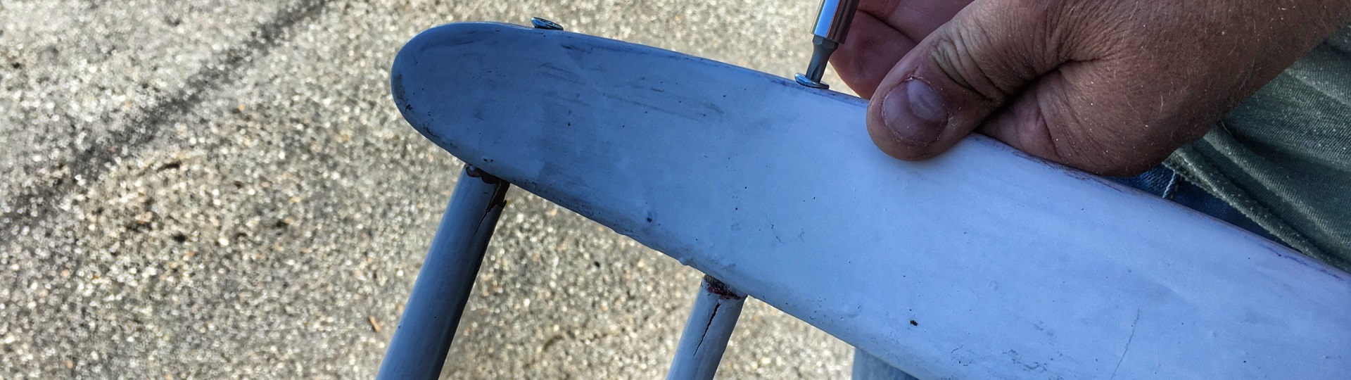 We executed the same procedure to the top of the chair's back, making sure that the chair would support even the most entusiastic chair rocker.