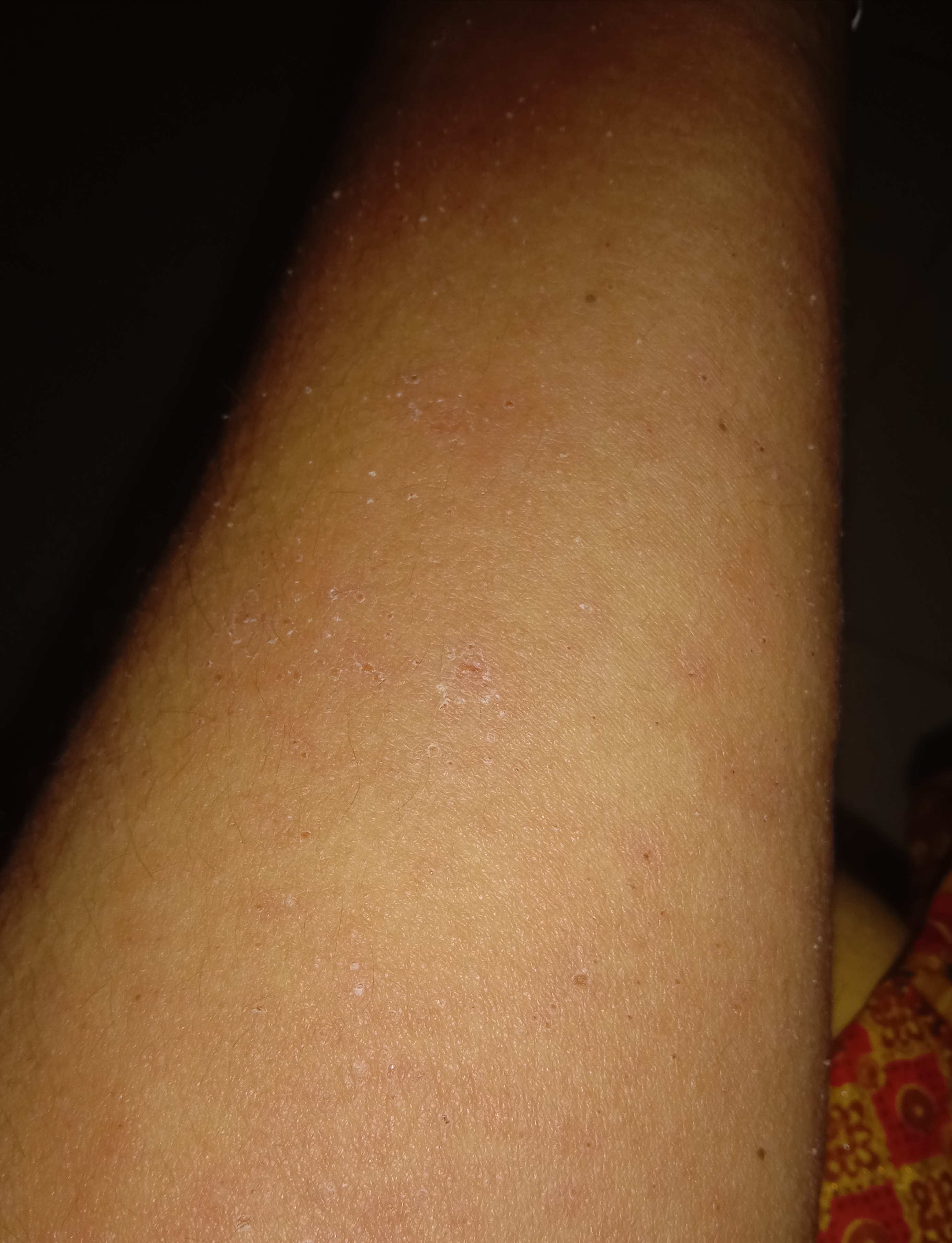 বেশিক্ষণ পর দেখি আস্তে আস্তে গোটা গুলো বেশি হচ্ছে আর চুলকানোটাও বেড়ে যাচ্ছে।রাতের খাবার খেয়ে ঘরে থাকা একটা এ্যালার্জির ঔষধ খেয়ে নিলাম তারপর ঘুমিয়ে পড়লাম।হঠাৎ করেই মাঝরাতে ঘুম ভেঙ্গে গেলো তারপর হাতের চুলকানোটাও অসহ্য লাগছিলো অনেক কষ্টে রাতটুকু পার করলাম।সকালবেলা উঠেই হাতের একটা ছবি তুললাম তারপর আমি যে ডাক্তারের তত্ত্বাবধানে আছি আসিফ রব্বানী স্যার কে হোয়াটসঅ্যাপ এ পাঠিয়ে পরামর্শ চাইলাম।স্যার দেখে আমাকে দুইটা ঔষধ লিখে দিলেন আর পাঁচদিন খেতে বললেন।স্যারের পরামর্শ অনুযায়ী ঔষধ খেতে লাগলাম একদিন পার হলো কিন্তু কোনোপ্রকার উপকার মিললো না।বরং বেশিই মনে হচ্ছিলো।আবারও ডাক্তার সাহেব কে বললাম তিনি আরও একদিন দেখতে বললেন।আমি আরেকদিন ঔষধ খেলাম কিন্তু সেদিন খুবই ভয়ংকর রূপ ধারণ করেছে দেখে আমি ভয় পেয়ে গেলাম।সাথে সাথে আবারও একটি ছবি তুলে আসিফ রব্বানী স্যারকে পাঠিয়ে দিলাম। তিনি ছবিটি দেখে আমাকে বললেন এখন আর আমার করার কিছু নেই আপনাকে চর্মরোগ বিশেষজ্ঞ দেখাতে হবে।
