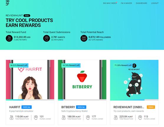 퀘스트를 마친사람(HUNTER)에게 일정한 보상을 주는 사이트 입니다.