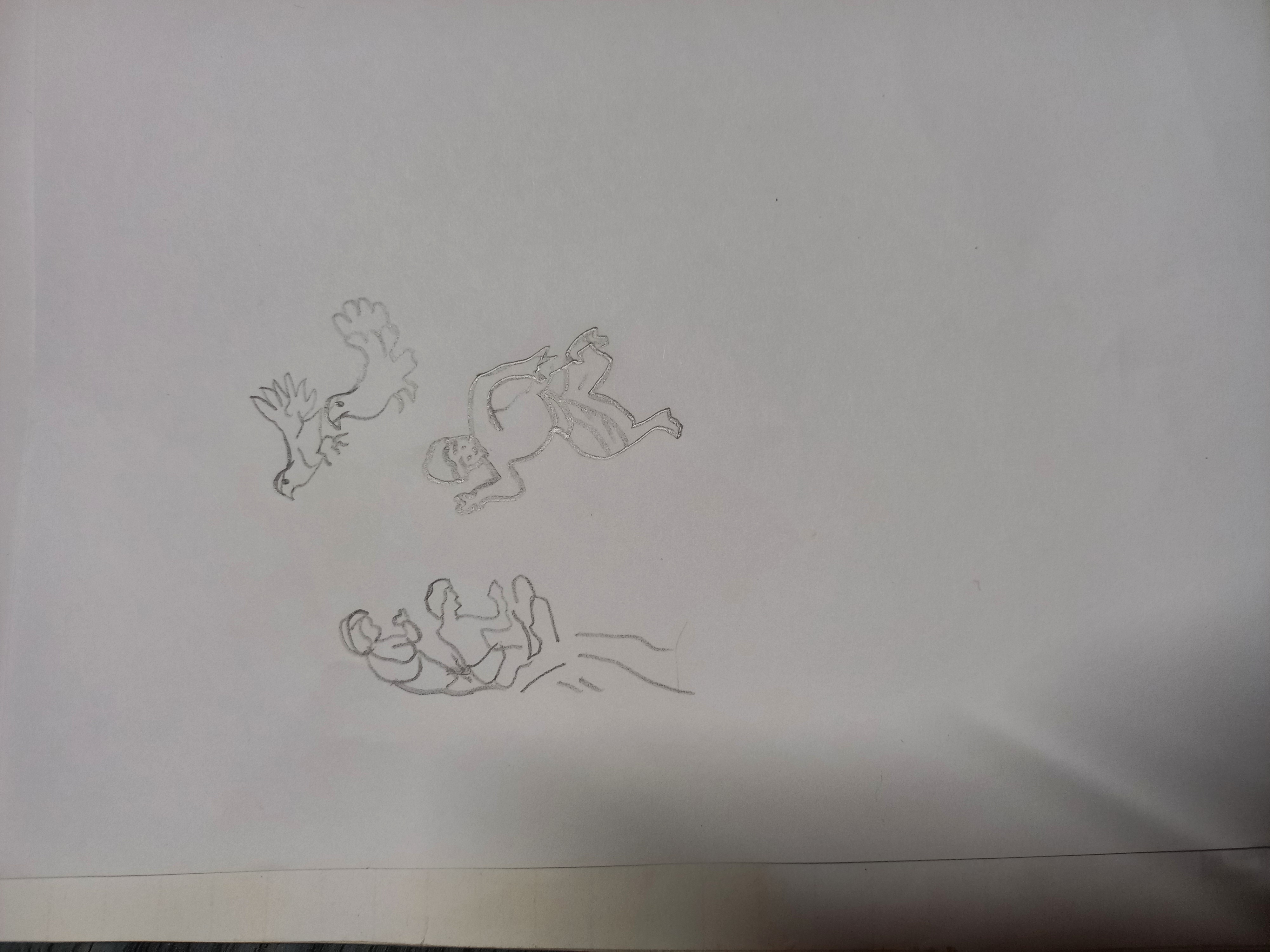 - প্রথমে ই একটি বালক ও দুটো পায়রা এঁকে দিলাম।