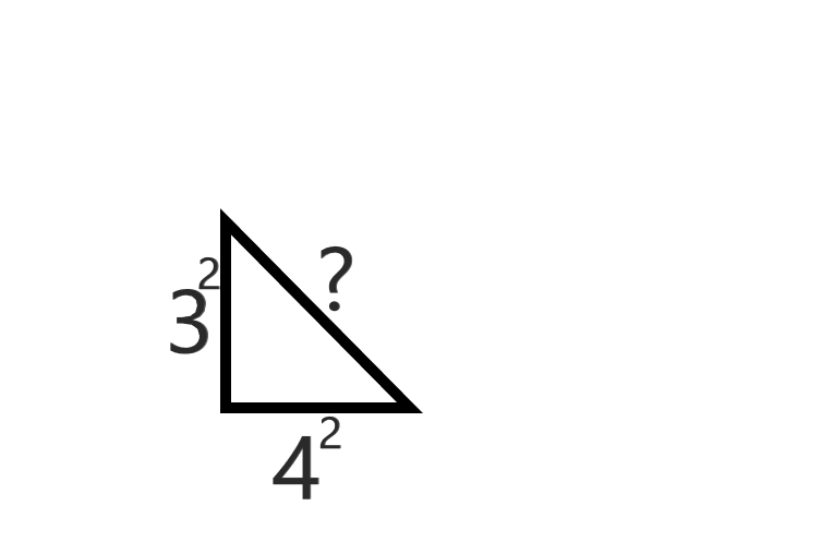 উত্তর : পীথাগোরাসের সূত্রানুসারে সমকোণী ত্রিভুজের অতিভুজের উপর অঙ্কিত বর্গক্ষেত্রের ক্ষেত্রফল তার অপর দুই বাহুর উপর অঙ্কিত বর্গক্ষেত্রের ক্ষেত্রফলের সমষ্টির সমান । তাই এখানে ৩২ + ৪২ = ৫২ হবে ।
