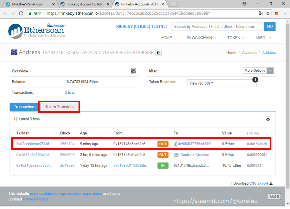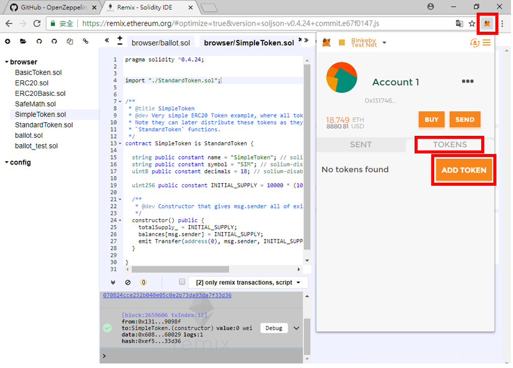 手把手在以太坊 Rinkeby 測試網路部署 ERC20 智能合約,並轉送 ERC20 Token。