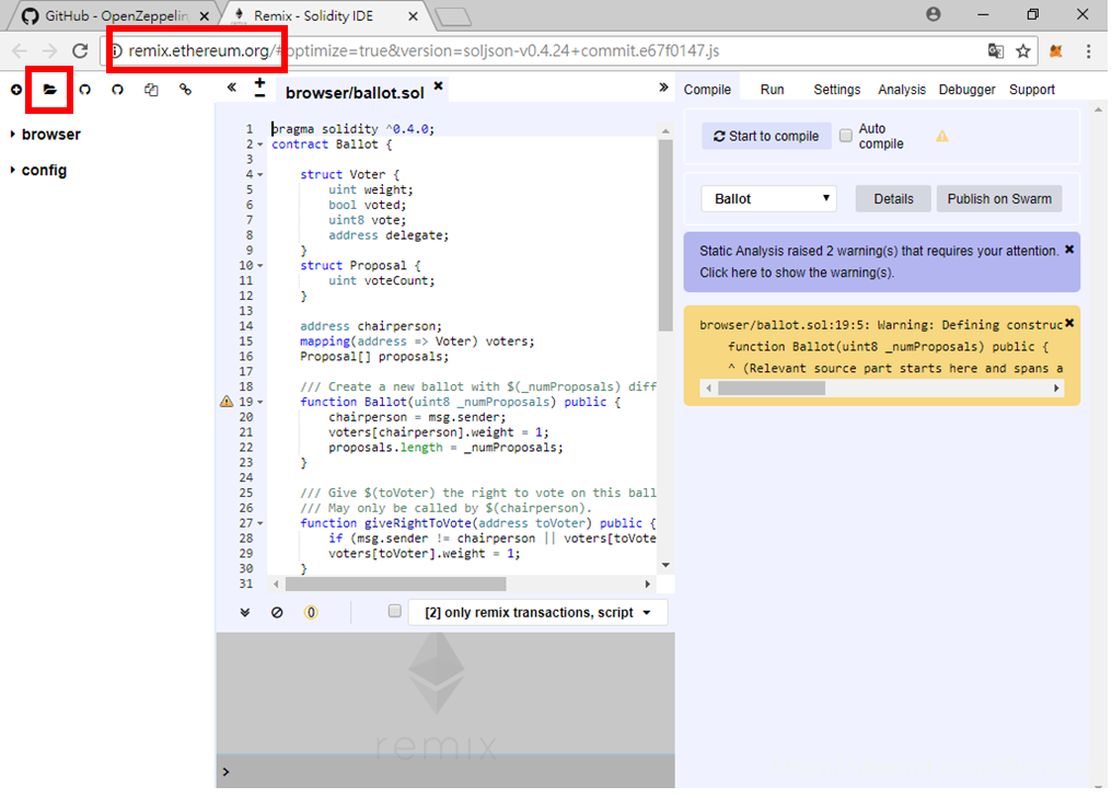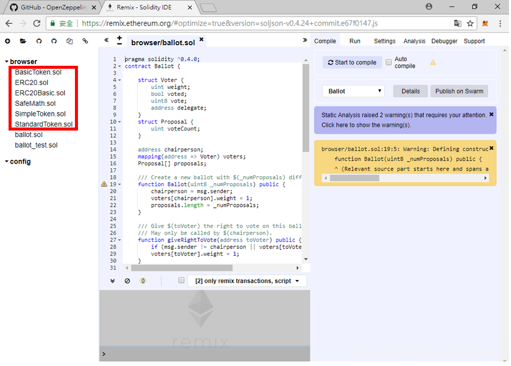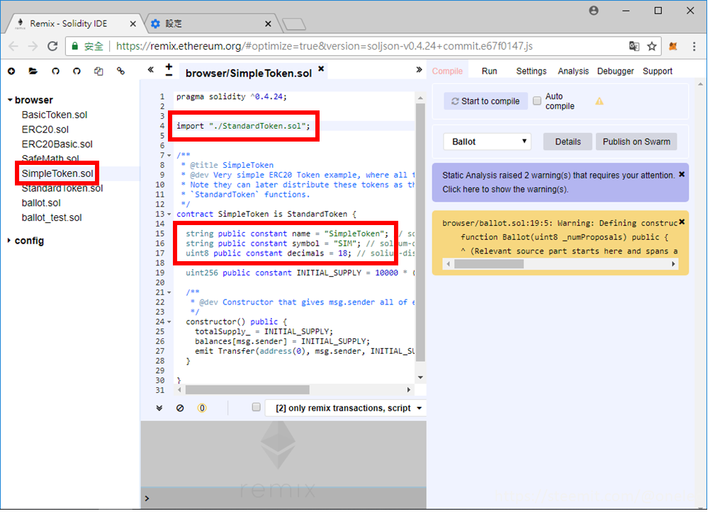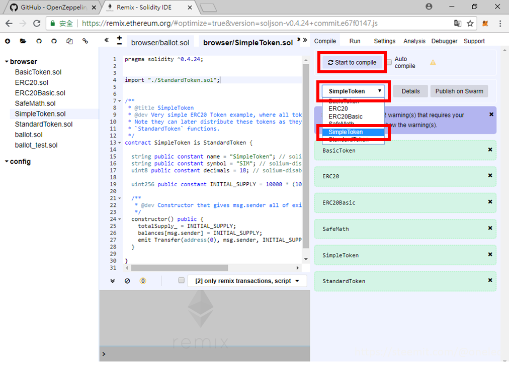 註:若無法點選【SimpleToken】,則可嘗試直接點選【Start to compile】來嘗試編譯。
