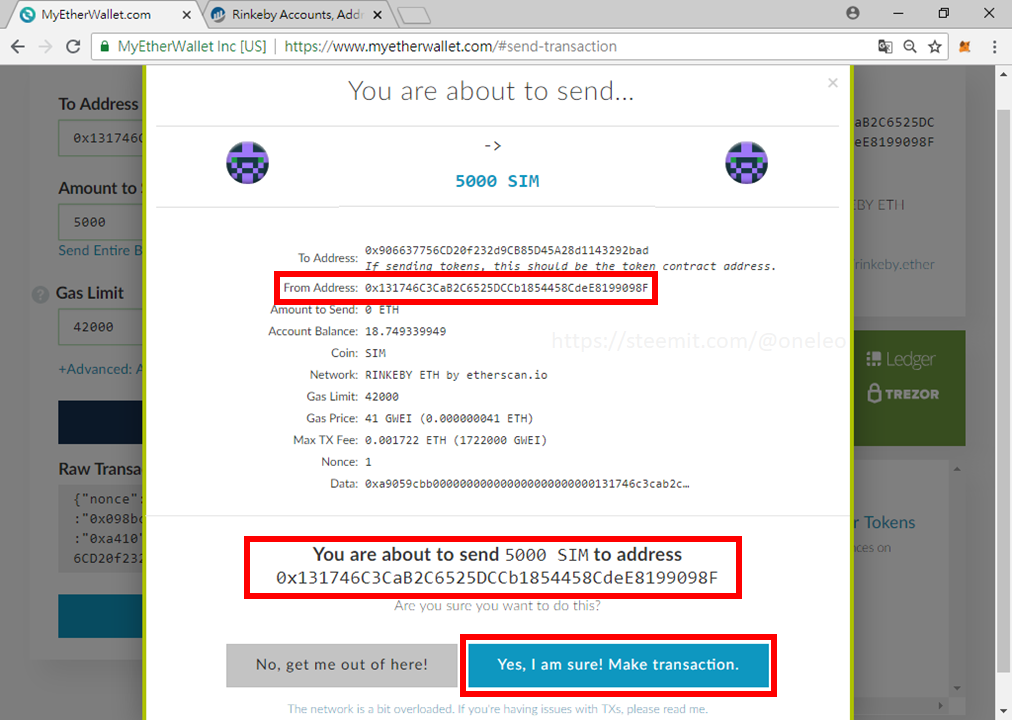 (10)接下來會出現確認明細,只需要確認最下方的訊息即可 → 點選【Yes, I am sure! Make transaction.】。