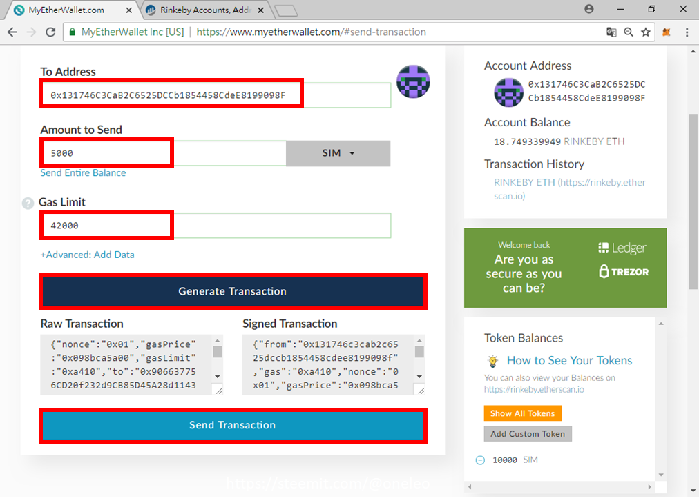 → 點選【Generate Transaction】→ 點選【Send Transaction】。