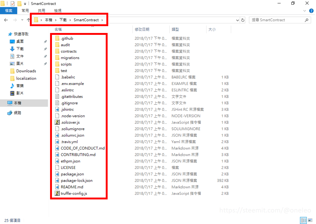 (2)將 openzeppelin-solidity 專案解壓縮(此處以解壓縮至「%USERPROFILE%\Downloads\SmartContract」目錄為例)。