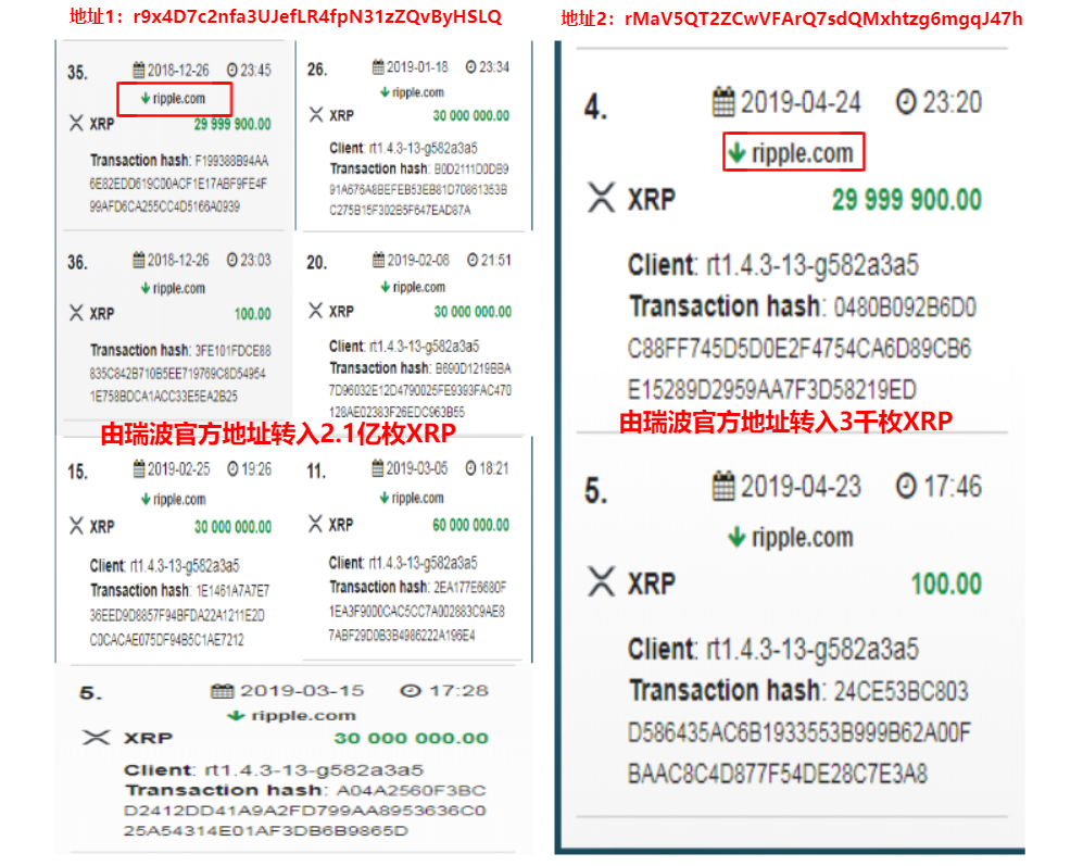 2018年底,ripple官方共向地址1、2中转入了2.4亿枚XRP