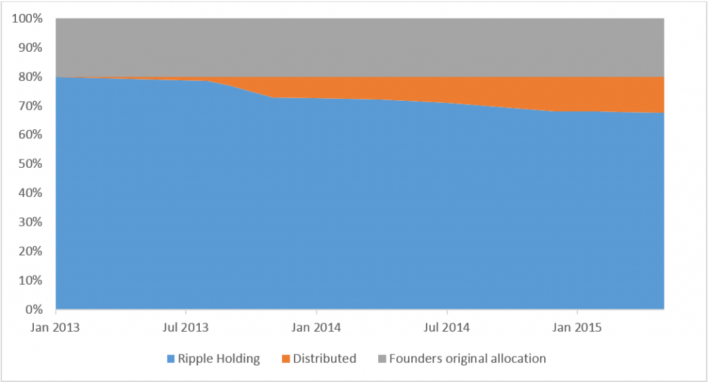 截止2015年Ripple公司大概持有70%左右的XRP,创始团队持有20%