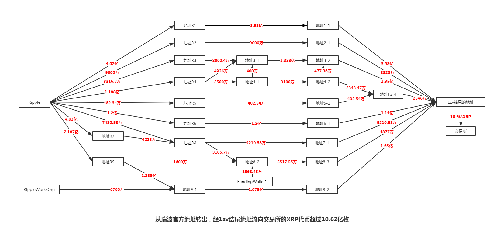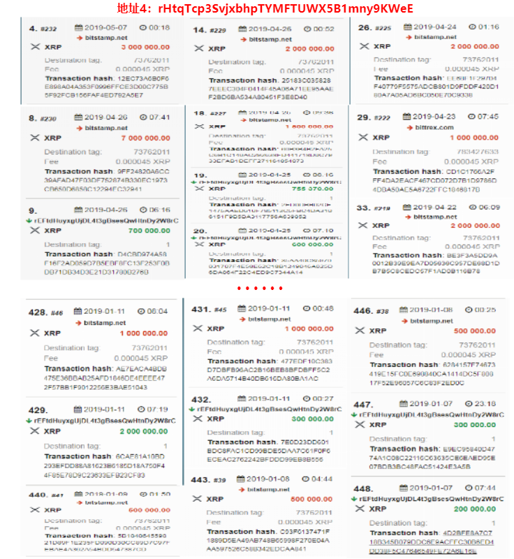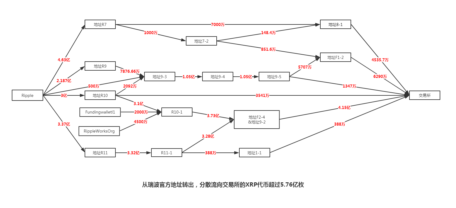 其中有1.9亿枚XRP通过地址4流向交易所