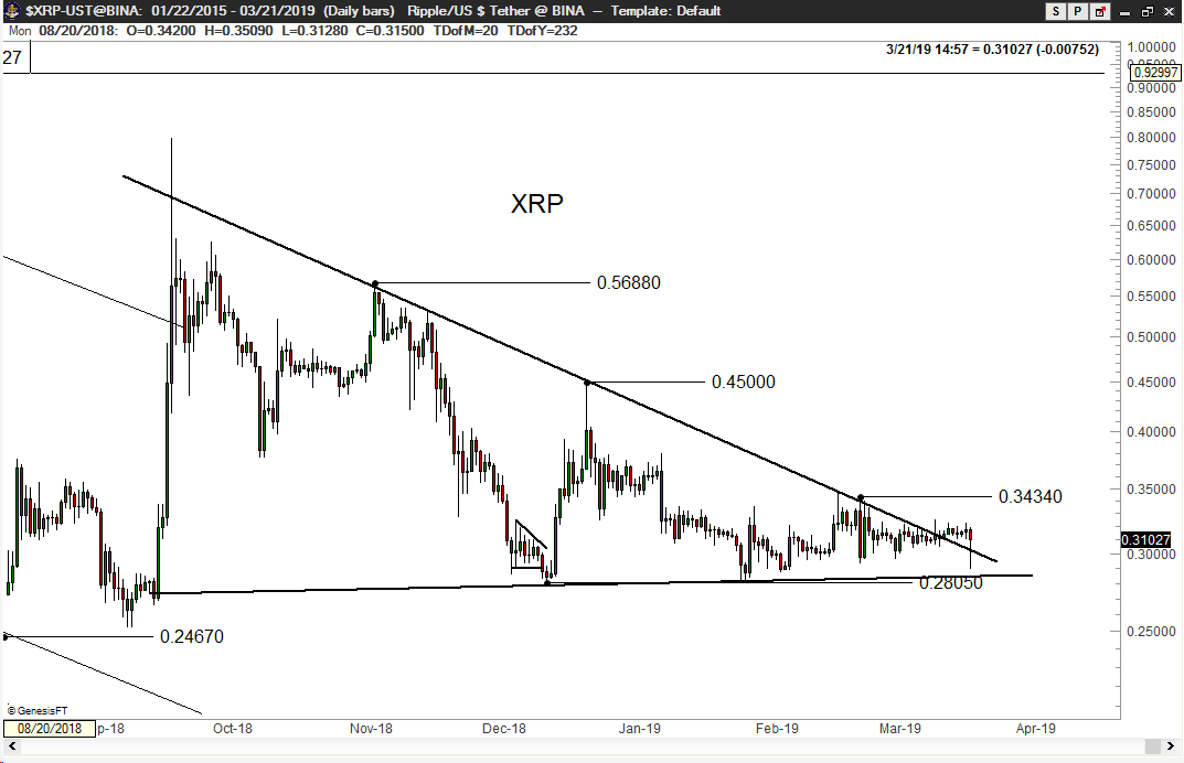 加密货币分析师Peter brandt在自己的推特上发布了一张XRP价格的走势图,并配文说:“庄家的动力在这个巨大的下降三角中发挥了作用,这说明市场是被操纵的,操纵者将价格维持在了一个相对稳定的水平。”