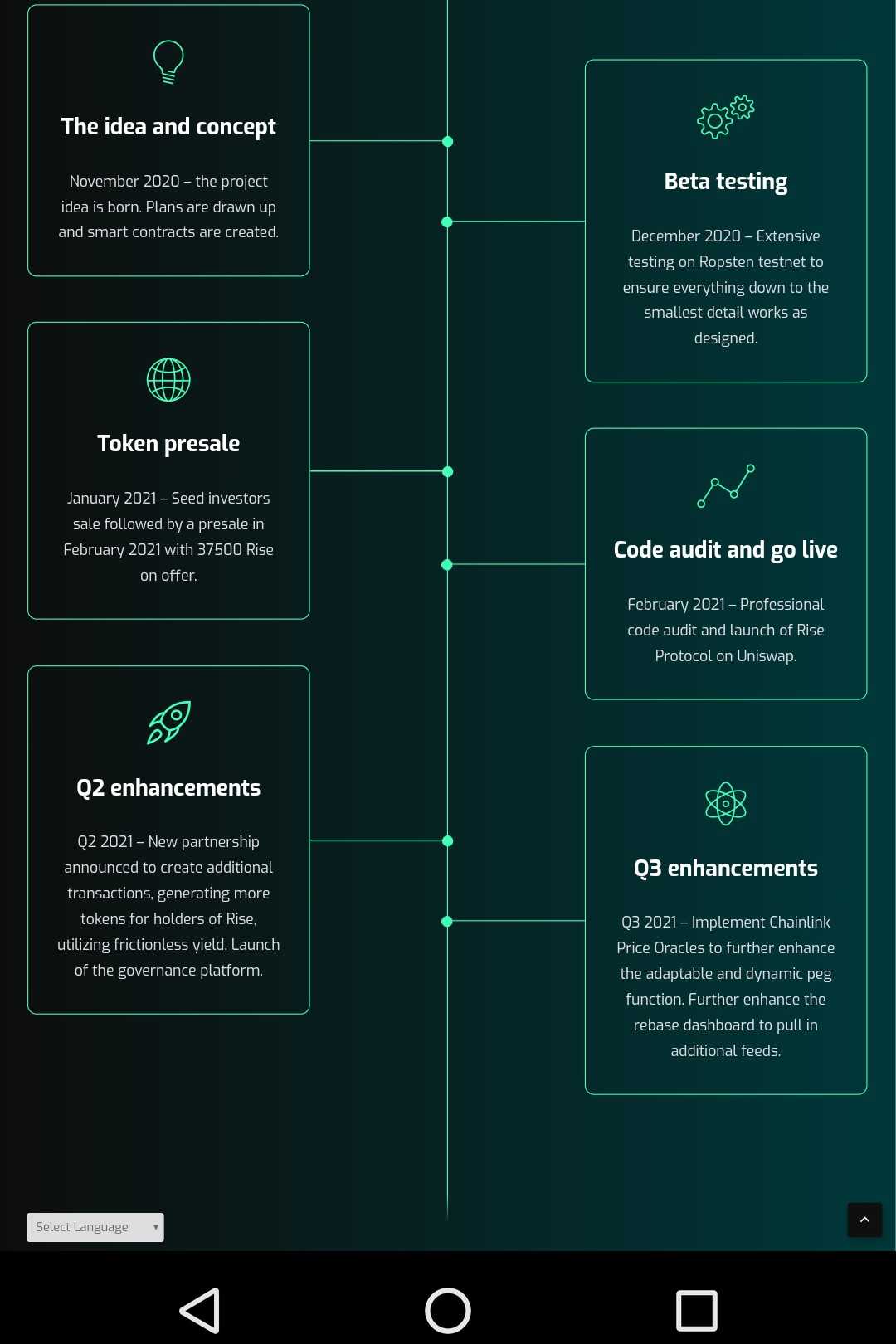 With the presale price will at 0.01 ETH, same as the Uniswap launch price, seed investors acquired Rise at 10% below launch price, with 80% to be vested over 4 weeks.Unique smart contract feature allows the project to enable Uniswap trading after liquidity has been added and presale tokens distributed. This will give everyone a fair playing ground once trading begins.Maximum transaction size of 500 Rise for the first hour after Uniswap trading is enabled, preventing bot sniping and creating a fair environment for regular traders/investors.Buy and sell tax helps prevent coordinated price manipulation. A portion of this tax is distributed instantly through frictionless yield to all holders based on holdings.
