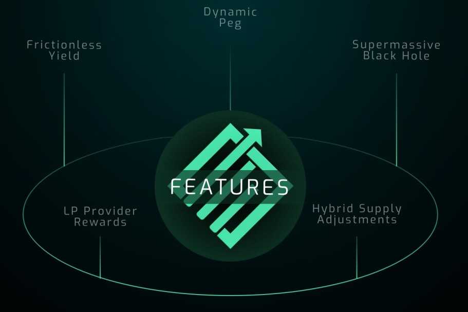 Powerful and unique "Supermassive Black Hole" deflationary concept that accrues and burns tokens through various different methods. Effects scale exponentially over time.Auto-liquidity generation that permanently locks a portion of each transaction into liquidity, creating an ever increasing sell floor.Initial rebase lag of 5. This means that if the price of RISE at time of rebase is 100% over the target price, we will receive a rebase for 20% (100% divided by 5)."Supply adjustment" that will increase the price of RISE, but decrease the supply if the market price is below 5% of target price for 3 consecutive days during the rebase time.