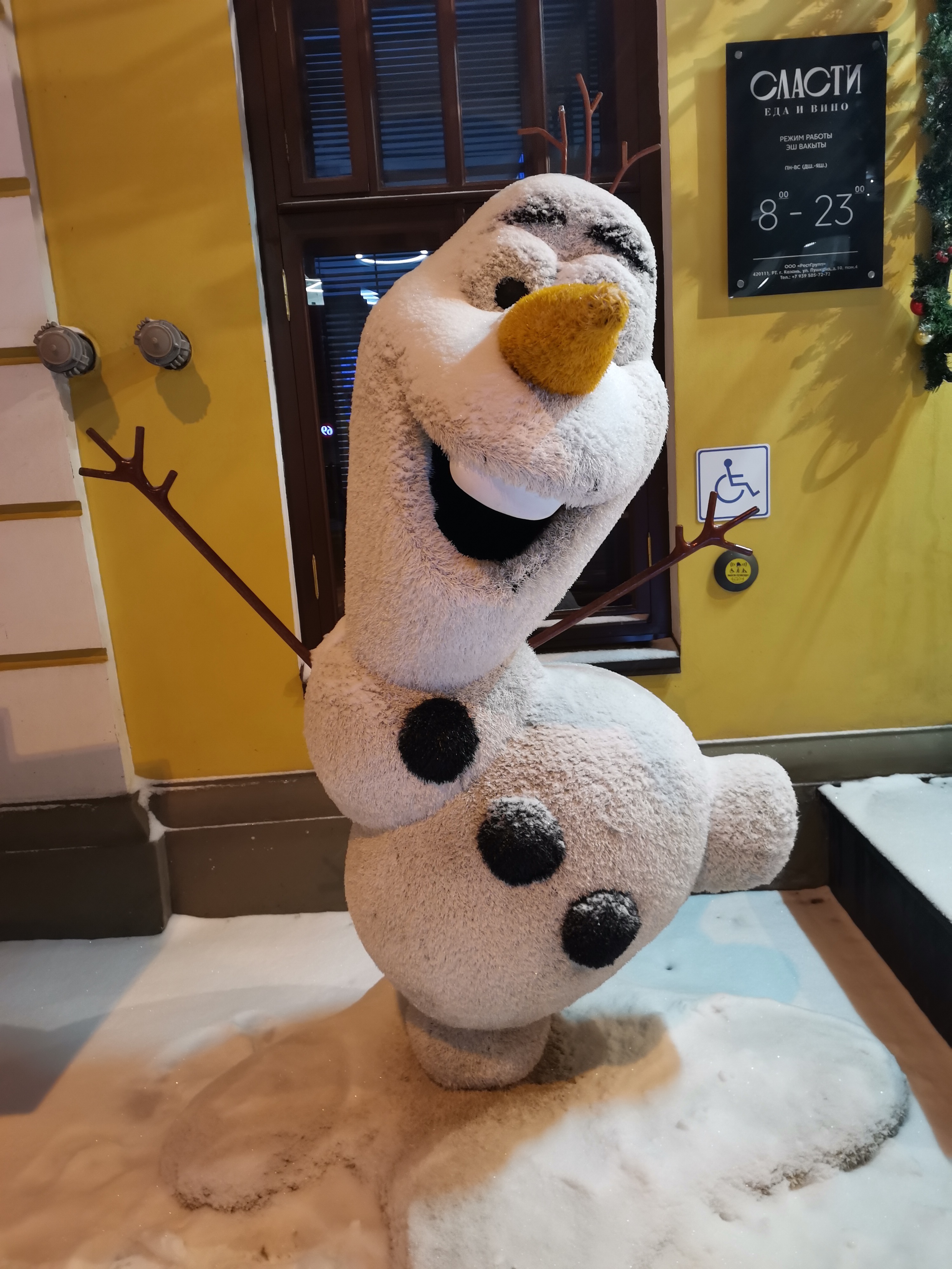 Хотя кукла перед кафе весёлая, ничего не боится, ей то бежать никуда не нужно)