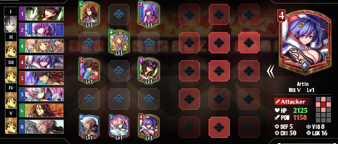 Понятно, что у каждого персонажа лекаря свои уникальные клетки лечения. Значит, перед тем как отправиться в бой, мы должны расставить своих ребят так, что бы они перекрыли максимальную область поражения на половине противника, не попали под ответный удар и, по возможности, находились под воздействием своих лекарей. Уже интереснее, но и это еще не все.