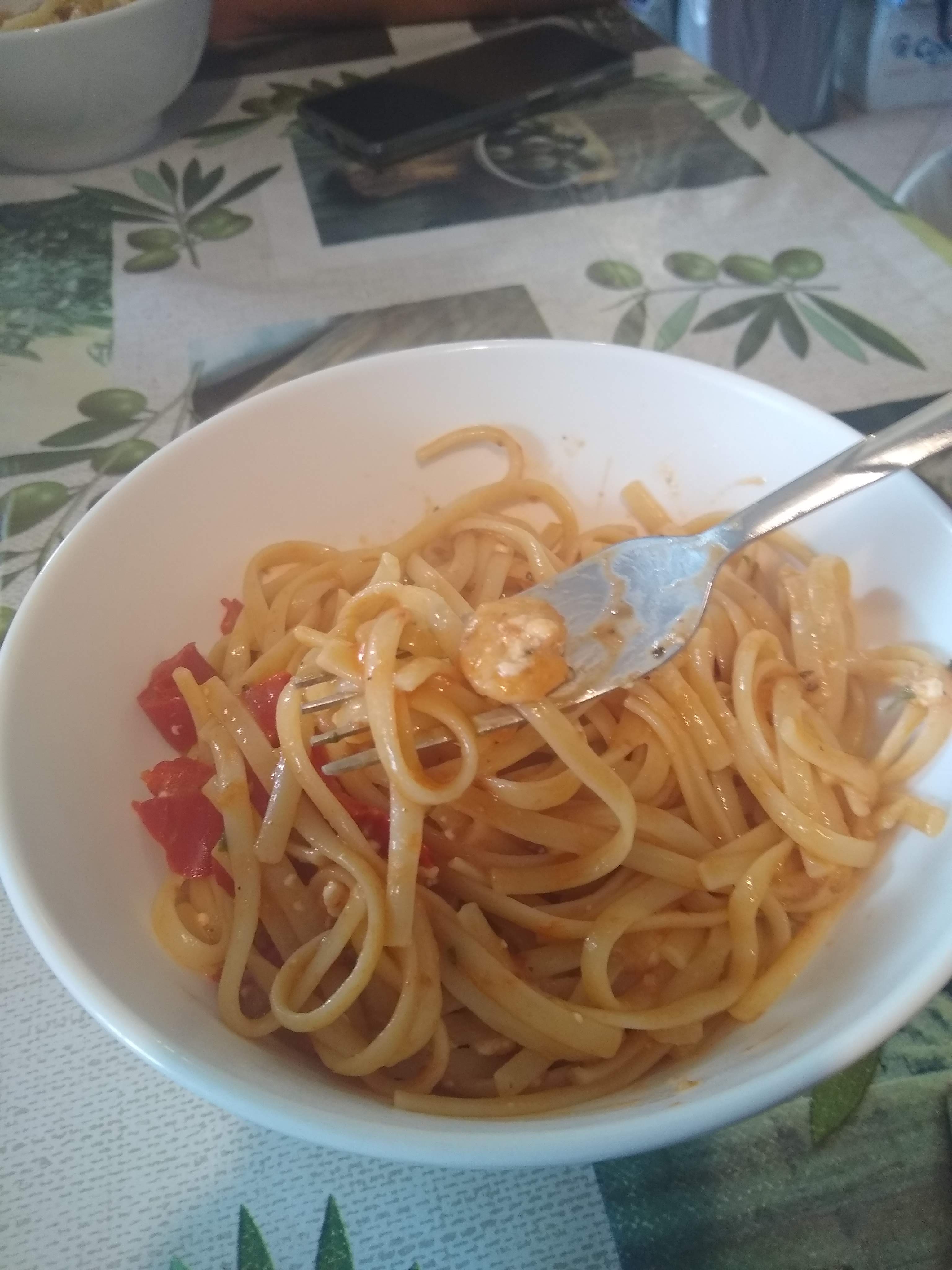 Foodruth-girl (71)in #ruthphotostories • 5 years ago Linguini with a shrimp and feta cheese sauce for today! #food #foodblog #foodphotography #palnet