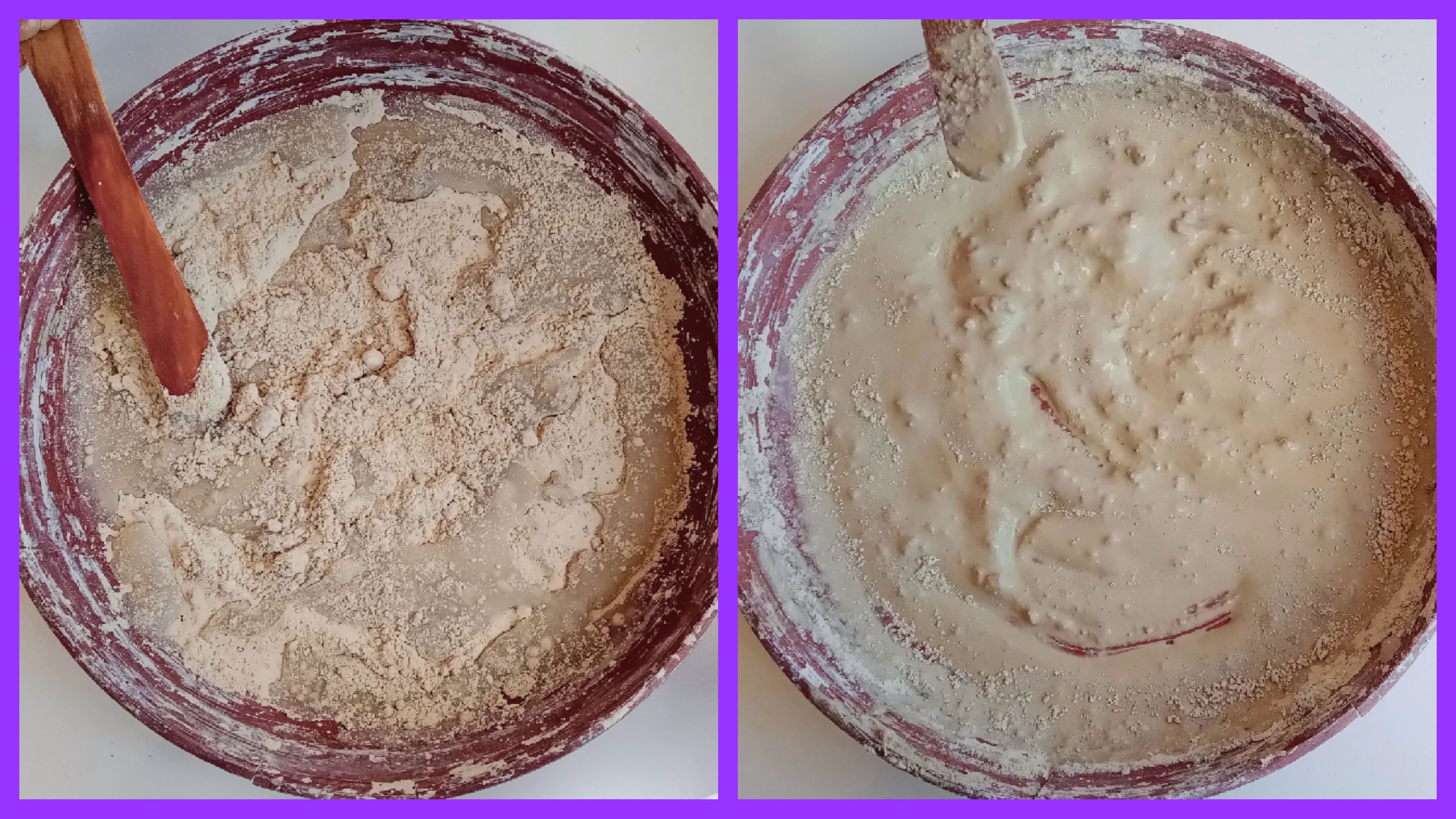 2. Con ayuda de la paleta de helado, revolvemos la mezcla hasta que quede homogénea y con una consistencia un poco gruesa.