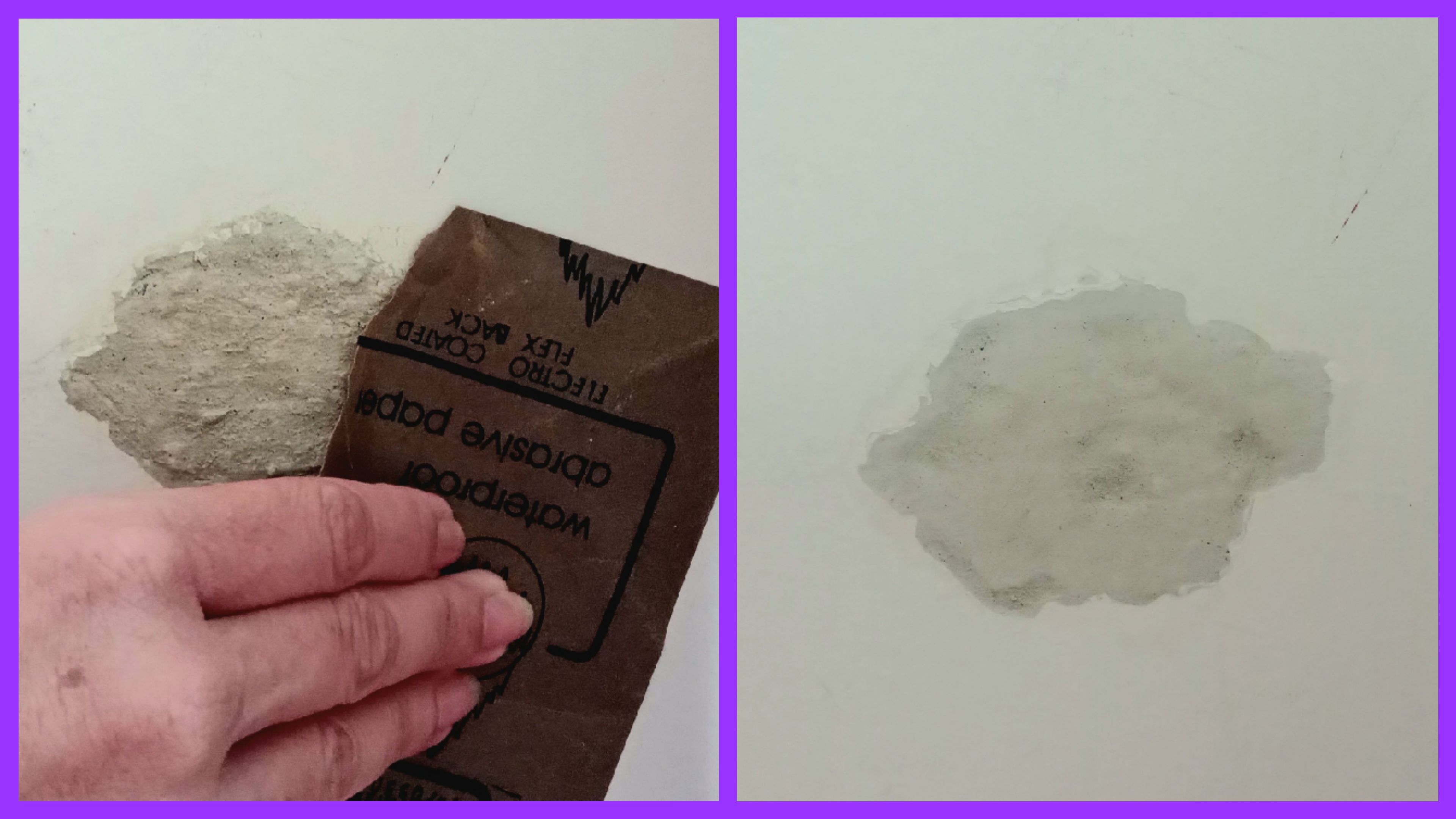4. Una vez rellenado el agujero, se deja secar por una horas hasta que la mezcla tenga un color claro. Luego procedemos a lijar la zona hasta que quede completamente pareja con el resto de la pared y con una superficie lisa.