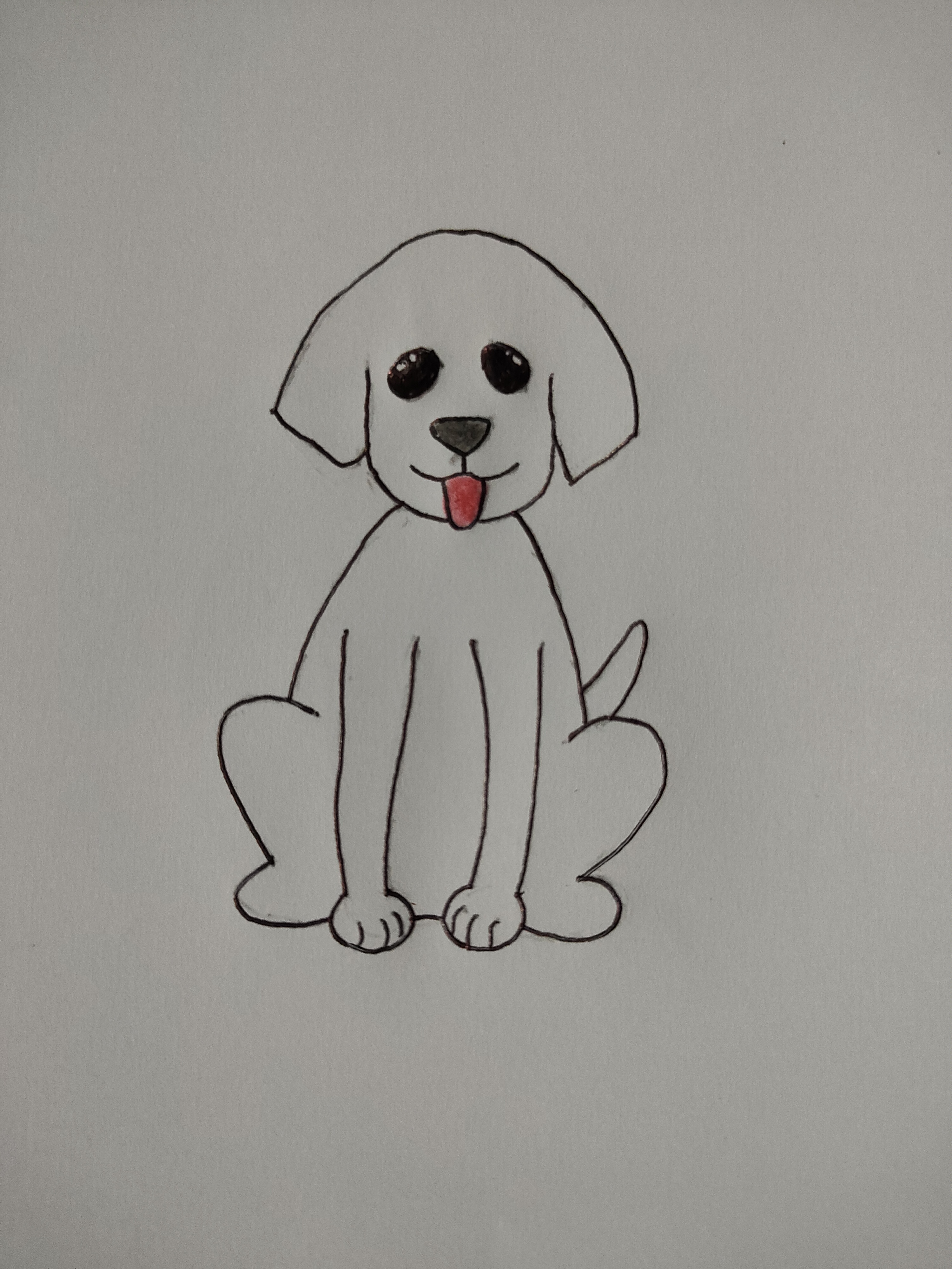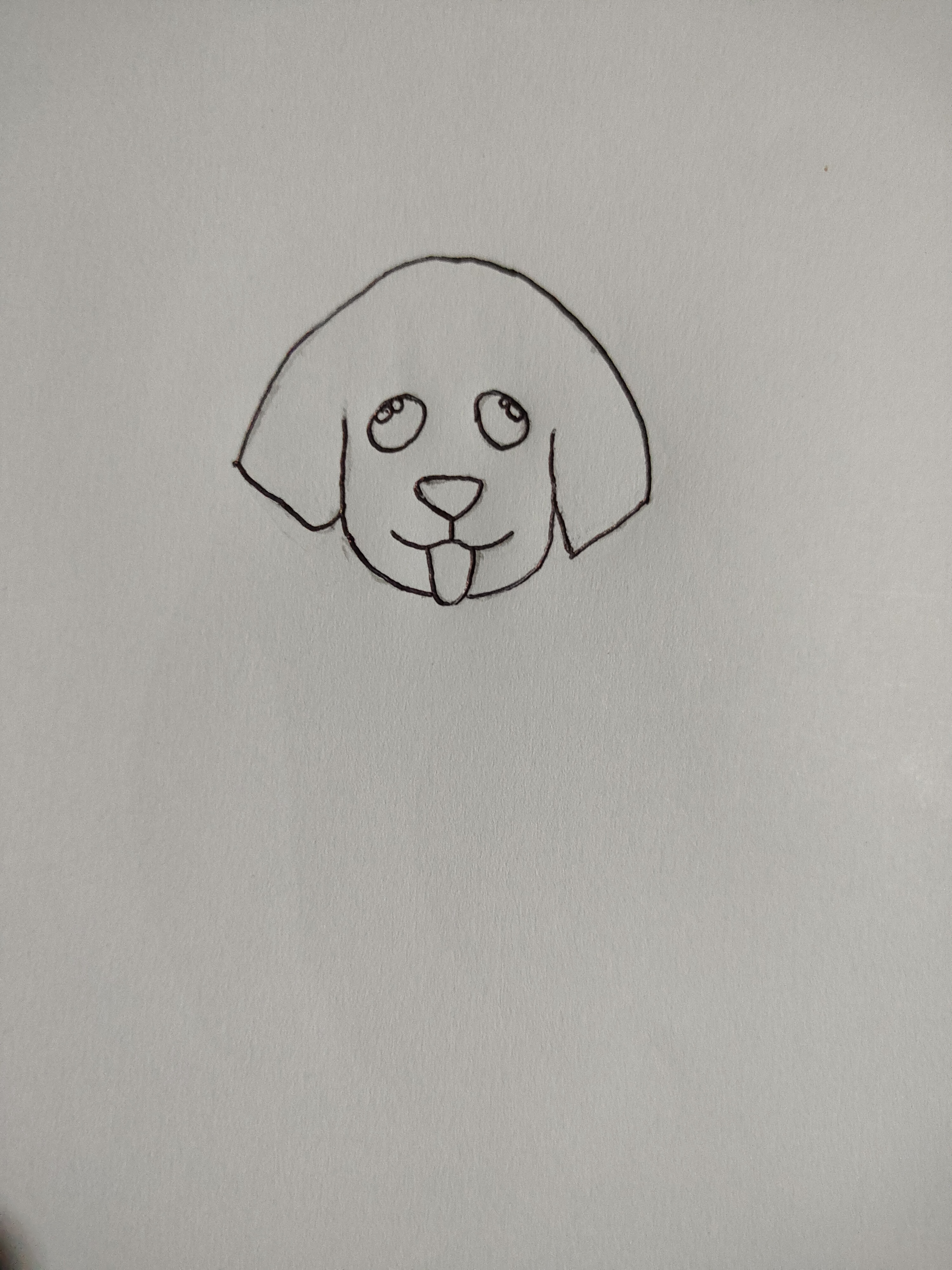 - Then I draw the dog eyes, nose,mouth and toung scene, after that I use the pen and draw over the pencil sketch.