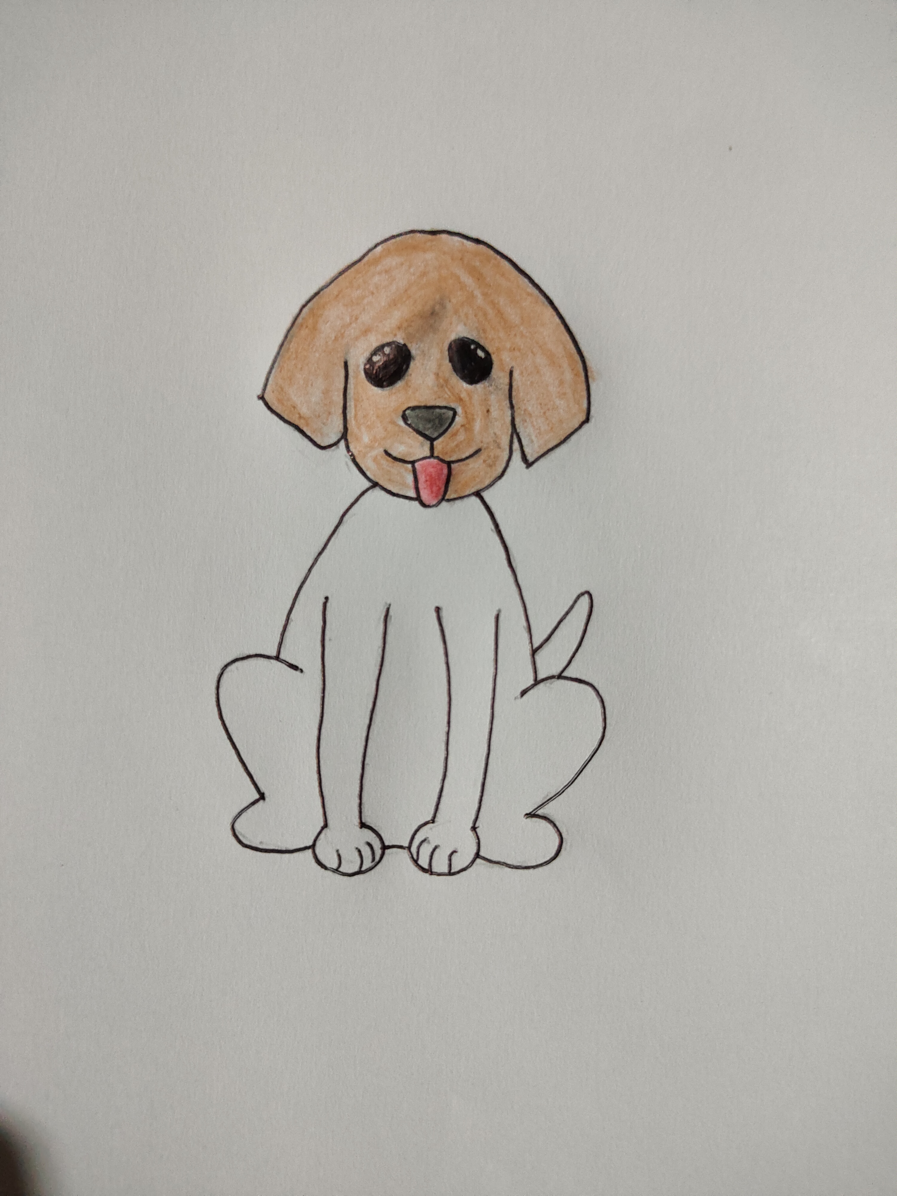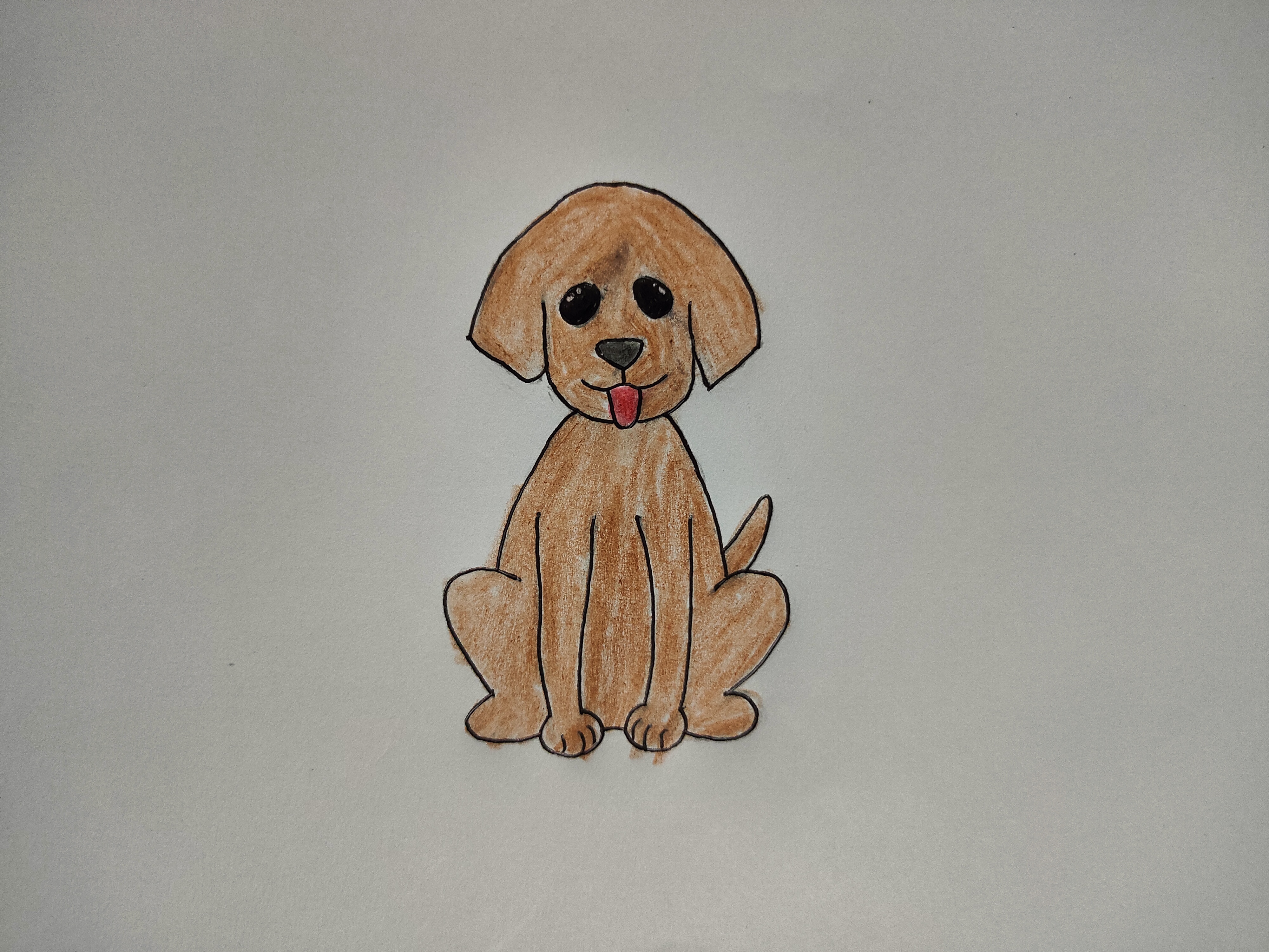 - In the final step I take the brown colour pencil again and apply over the dog body, legs and tail part nicely. After completing then I taken a picture.