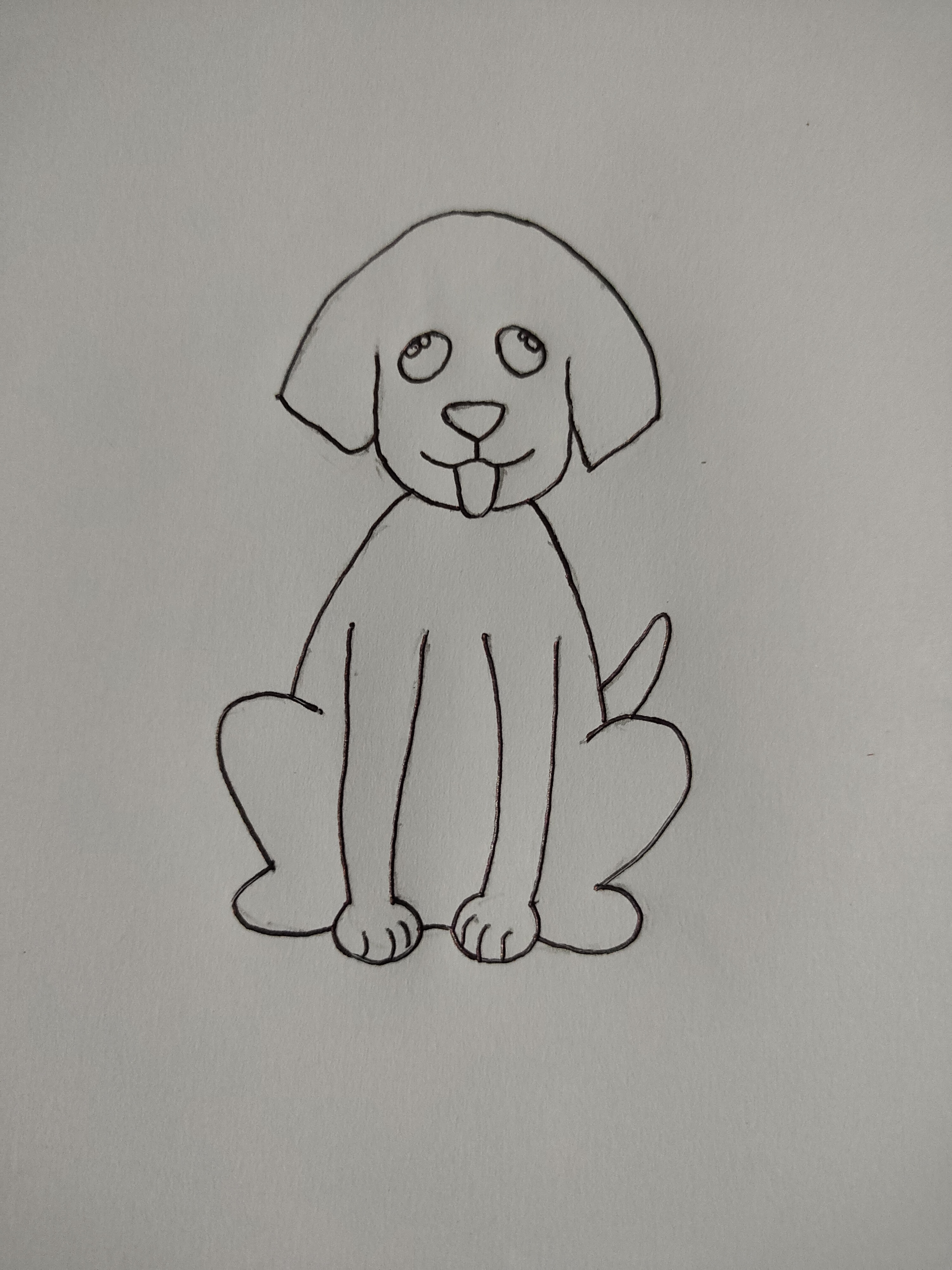 - In the next step I draw the dog legs, body and tail picture by using graphite pencil. After that I again use the pen and draw over the pencil drawing.