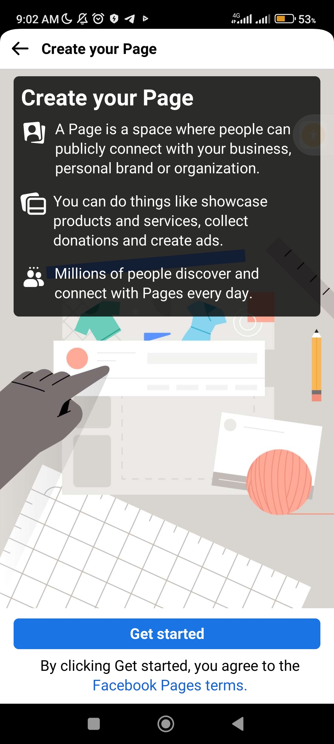 Alright, since I already have a Facebook account, the next thing for me to do actually do is for me to proceed to login to my Facebook account. I went to the create page option.
