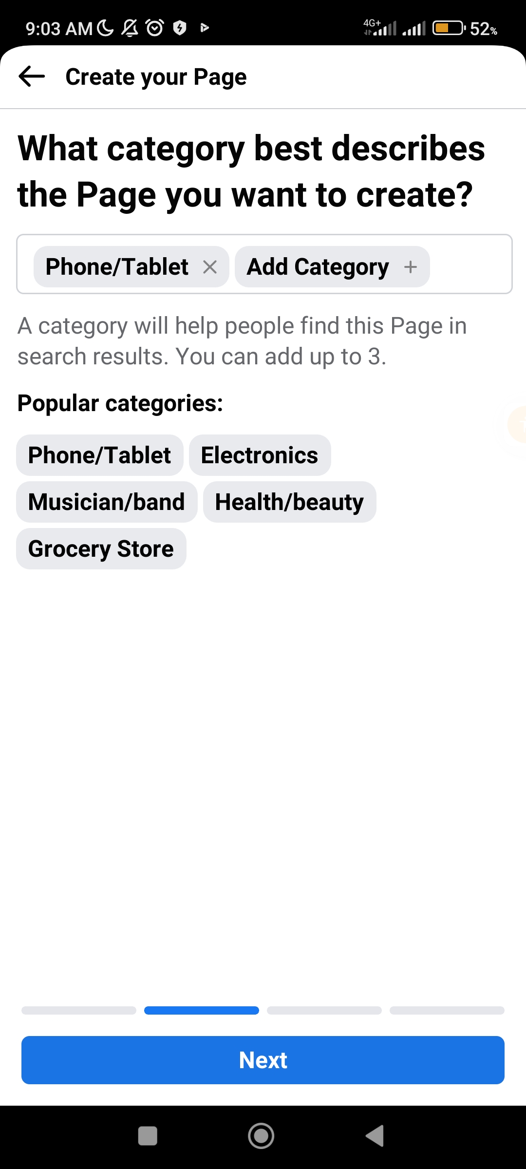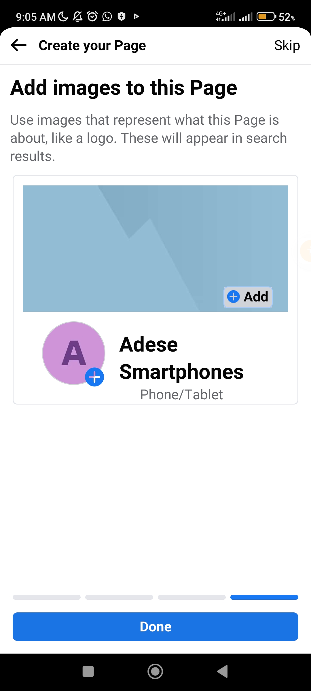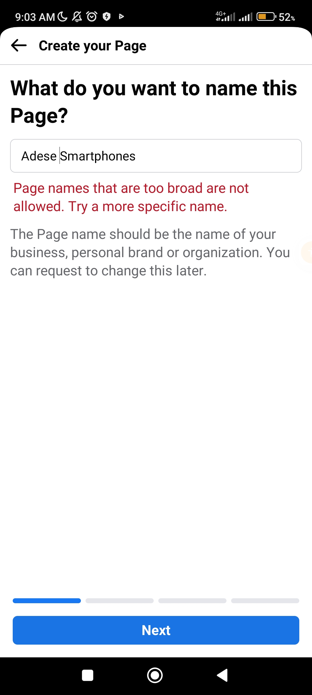 Next I begin to create the page. I make use of the name Adese Smartphone since my page will be focused on Smartphone. Then I choose the category that best described my page which was also phones/tablet.