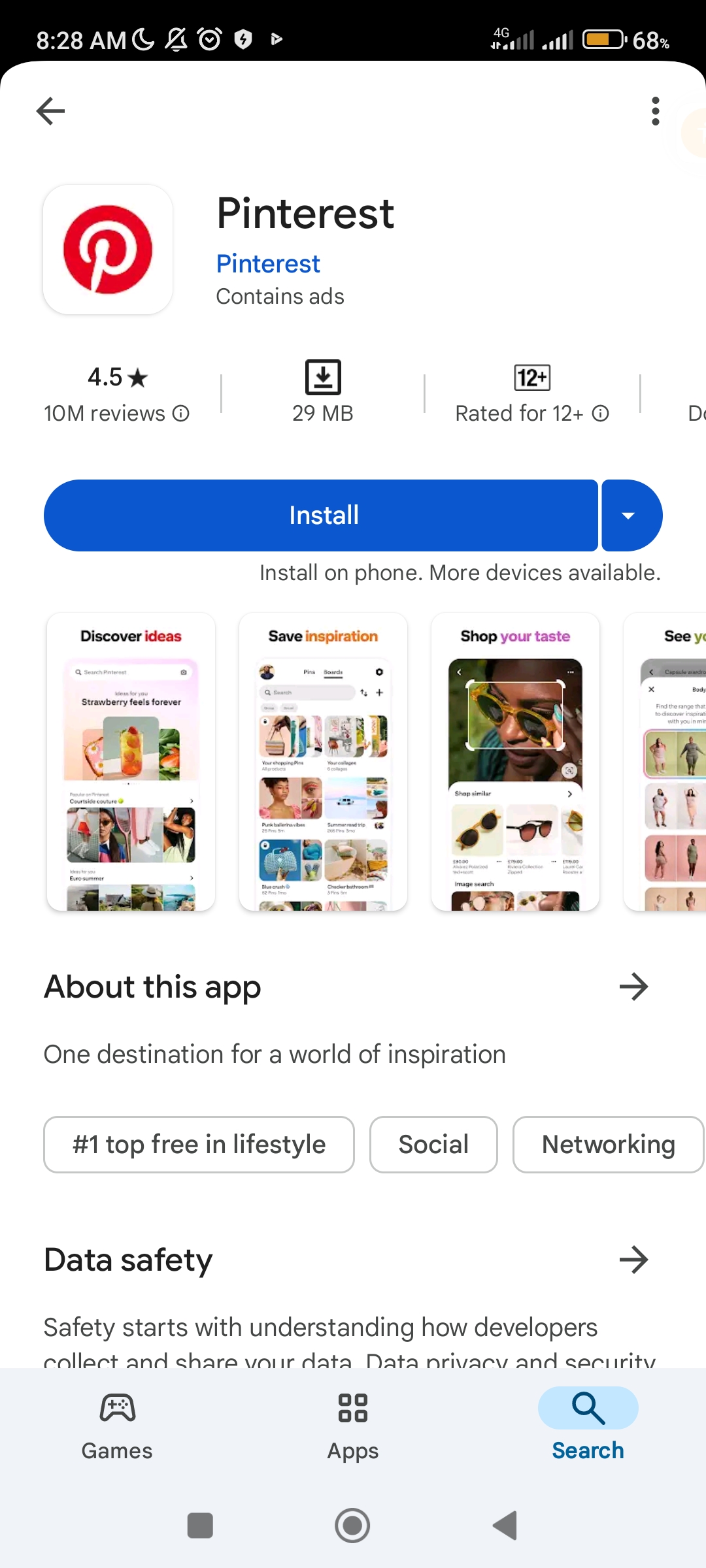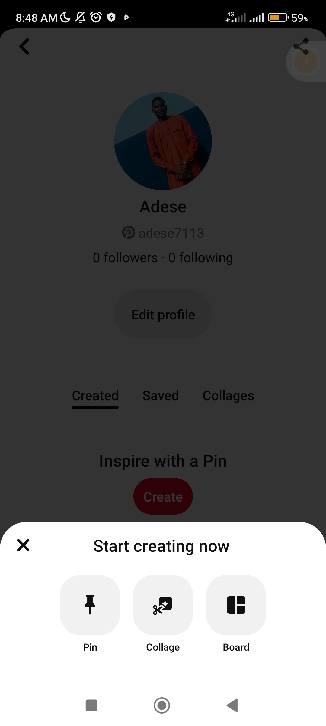 In completing this task, I will need to create a Pinterest account and not only that but also install the app because I discovered I didn't have it.