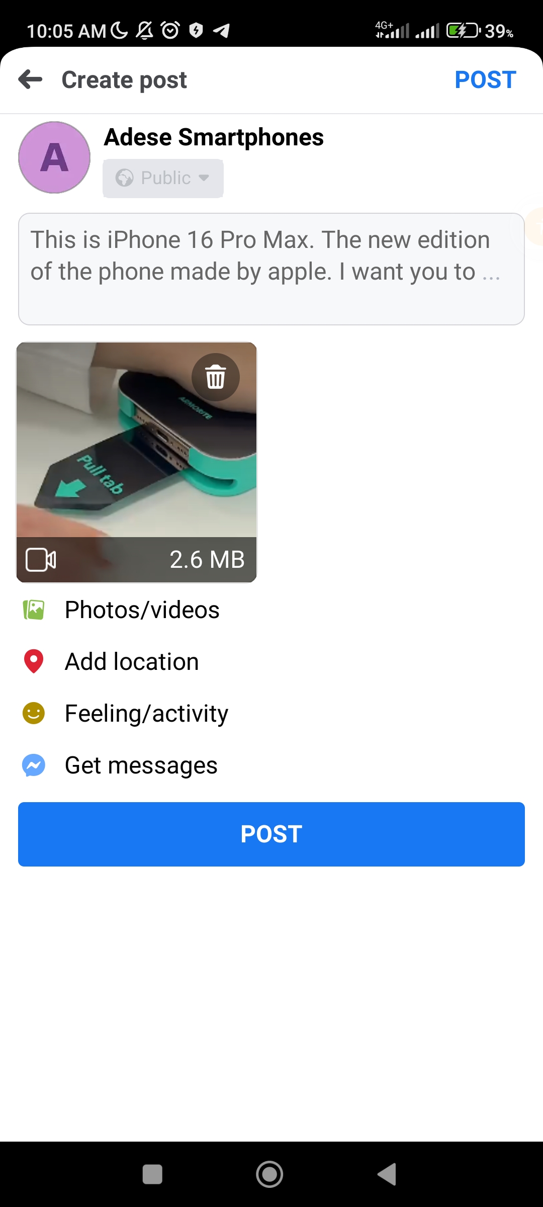 So the next thing I will do is to actually make my first post as I will call it my first video so that I can be able to make use of it to reach my needed audience.
