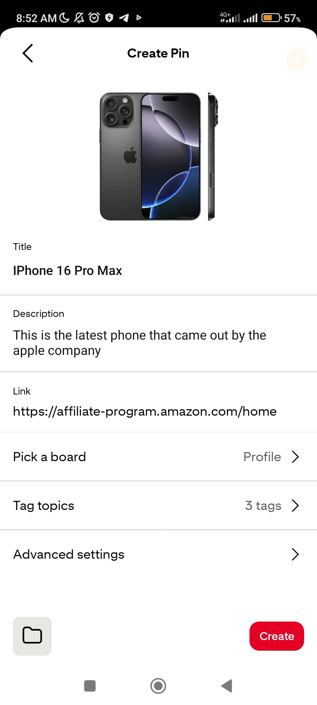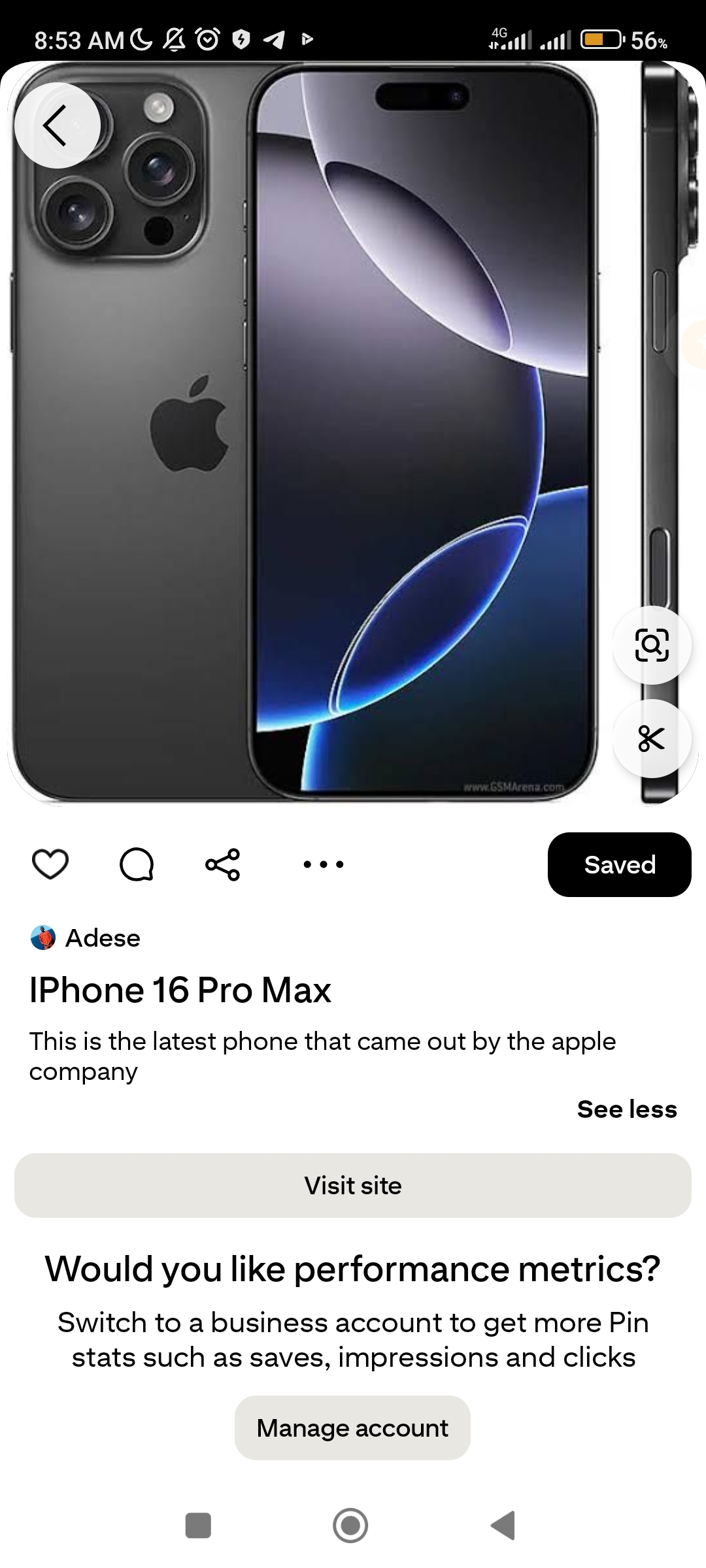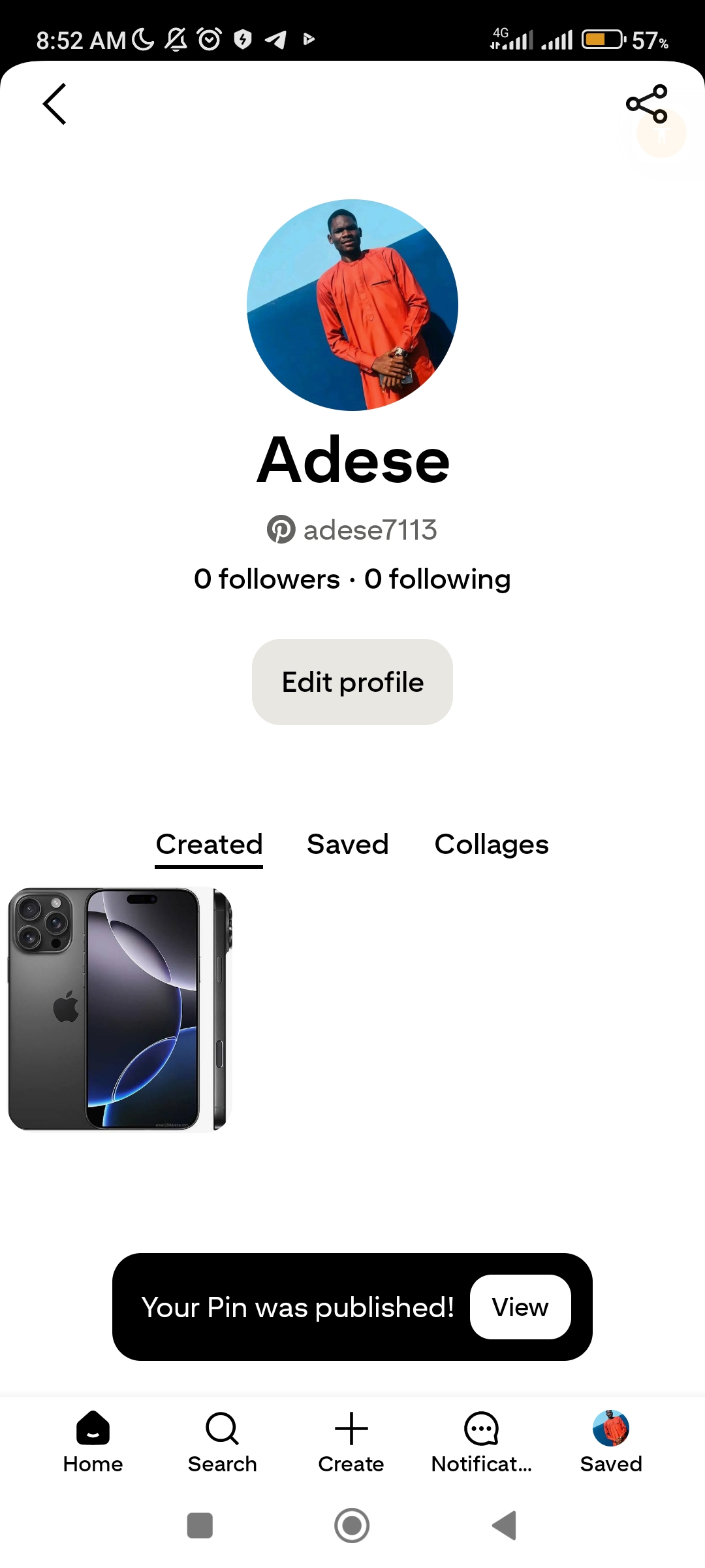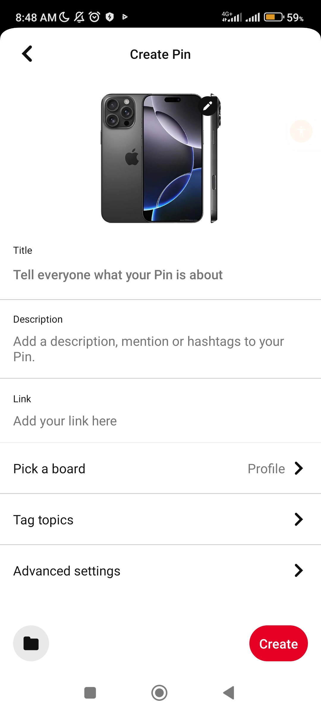 Then next is to upload that picture which I want to pin. Since I created my account to be related for phone. The picture I want to pin is of iPhone 16 Pro Max.
