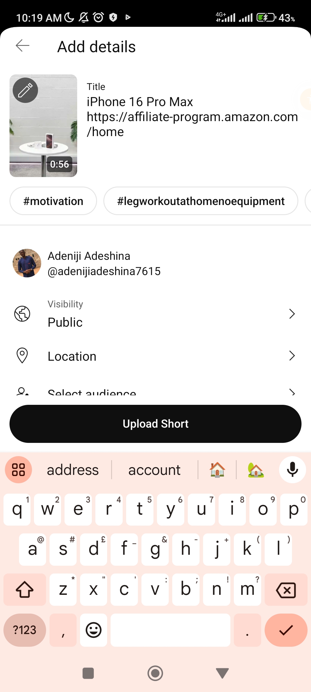 Then I input the description and not only that but also add my Amazon affiliate link to it as you can see below.