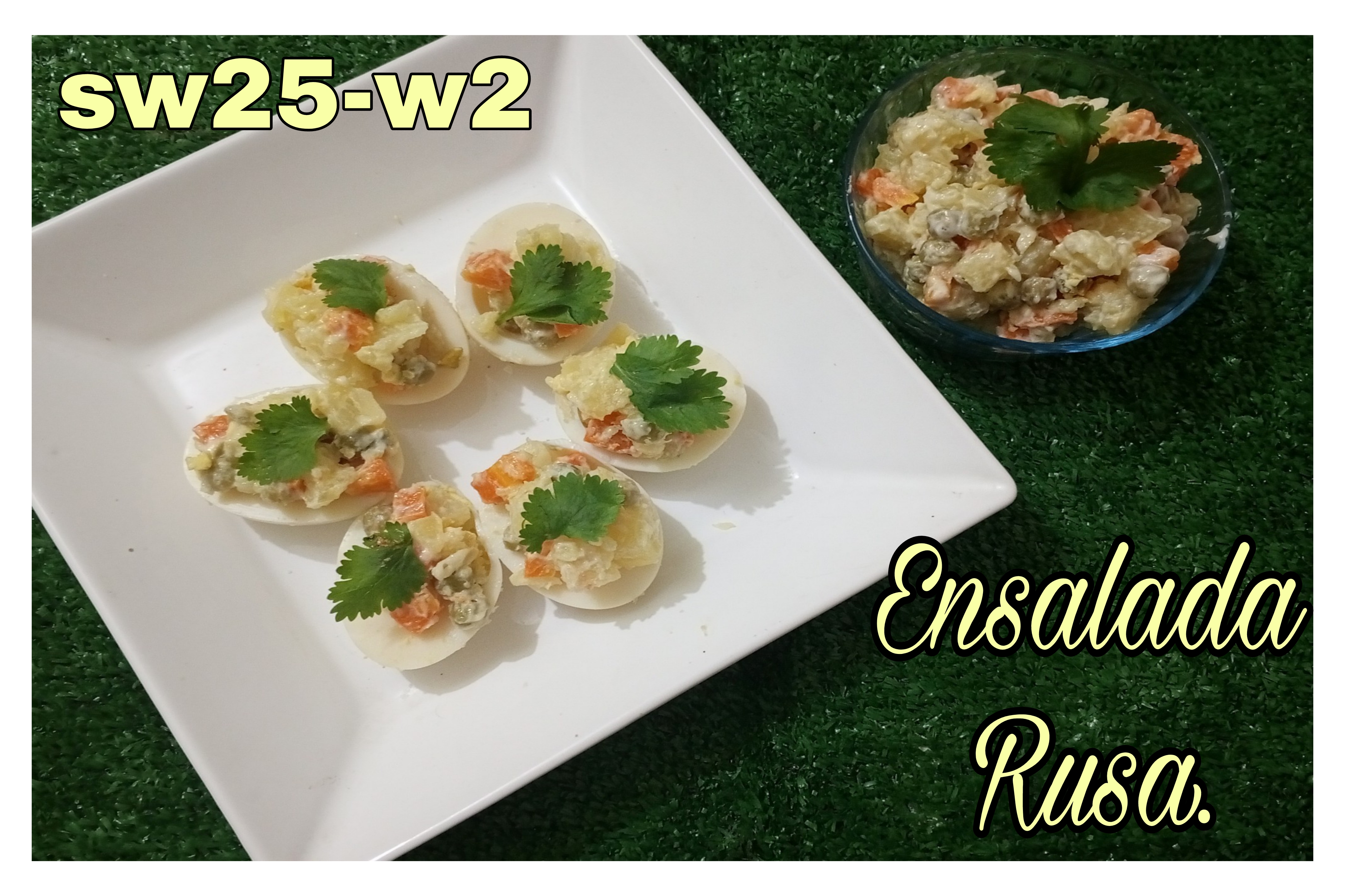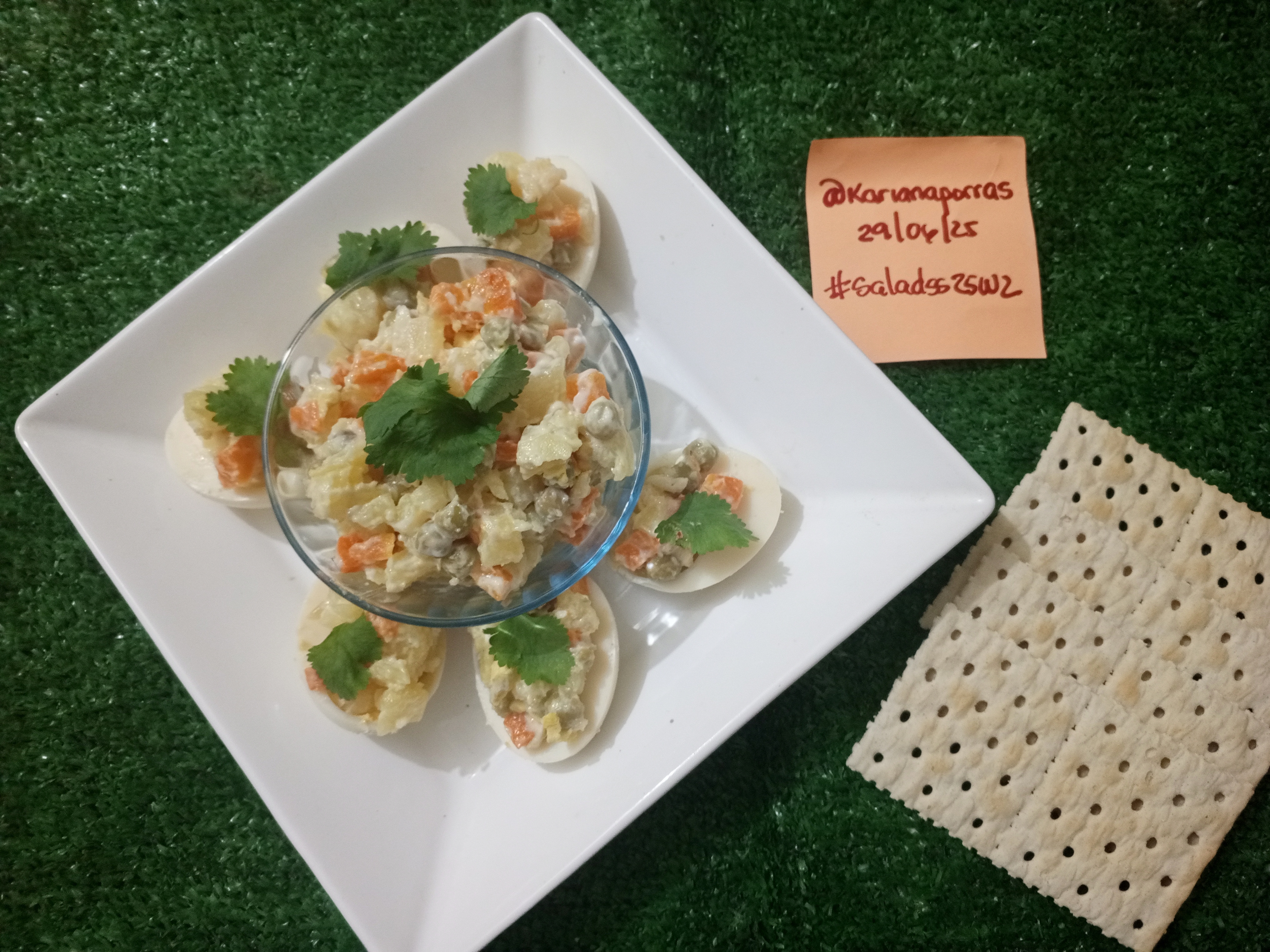 Incluir un cartel de identificación manuscrito, junto a su Ensalada Rusa, que contenga nombre de usuario y fecha y la etiqueta #saladss25w2