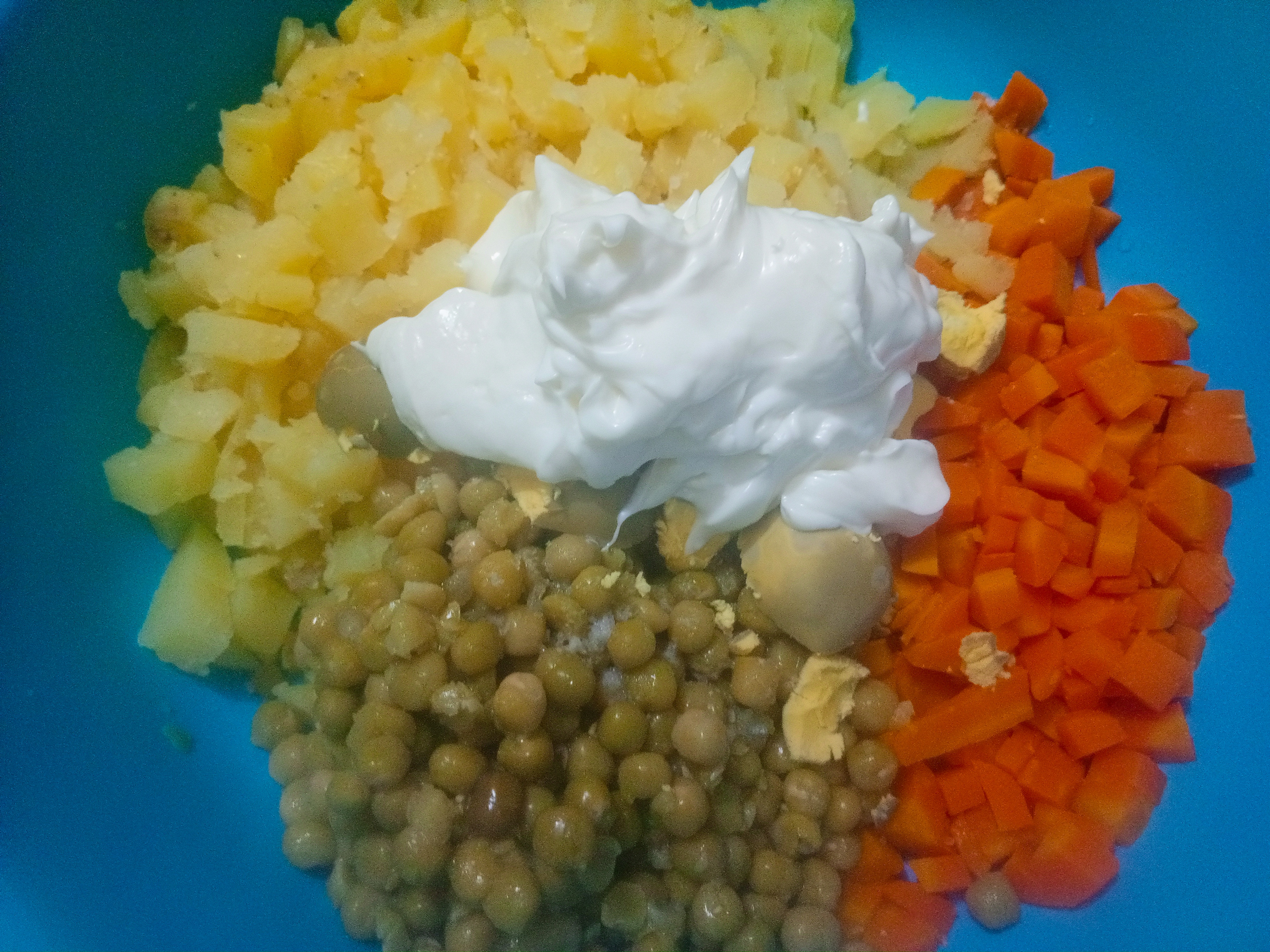 🥗 Ponemos sal al gusto y Agregamos mayonesa al gusto mientras revolvemos.