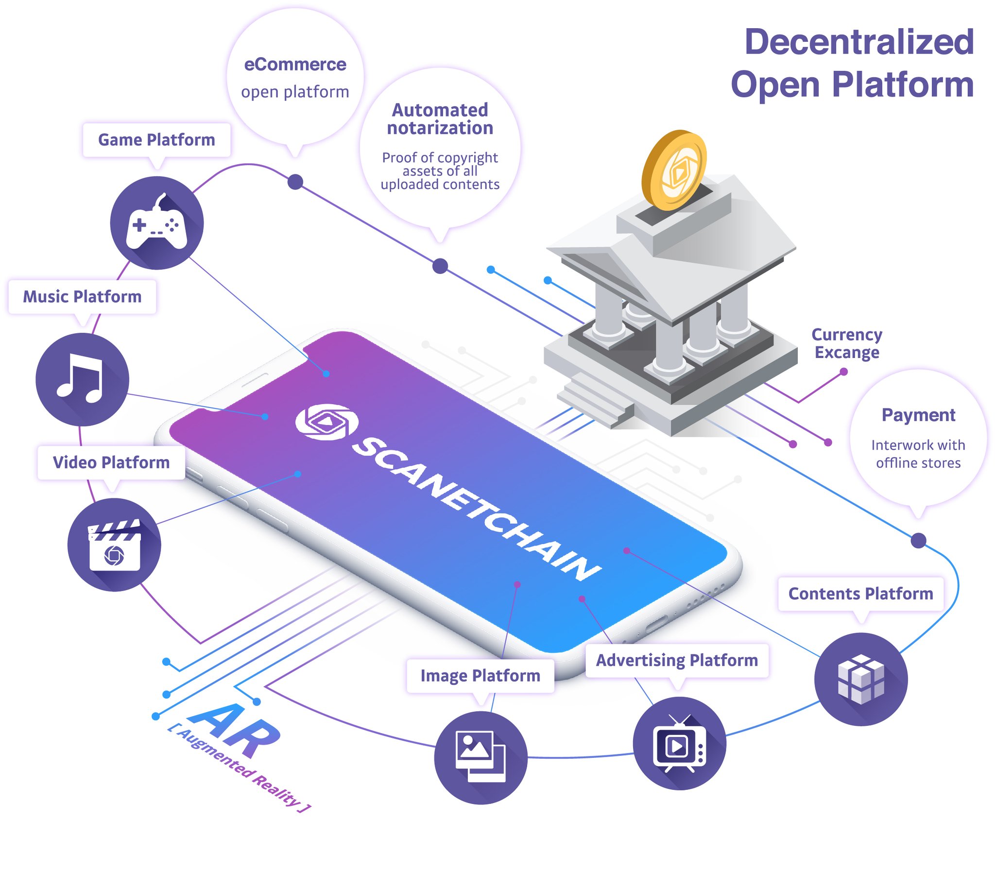 • AR blockchain configured for commercialization services One of the main favorable conditions of Scanetchain is that it represents the key features that they need in their day-to-day routine. I’m referring to shopping, advertising, social networks, etc.