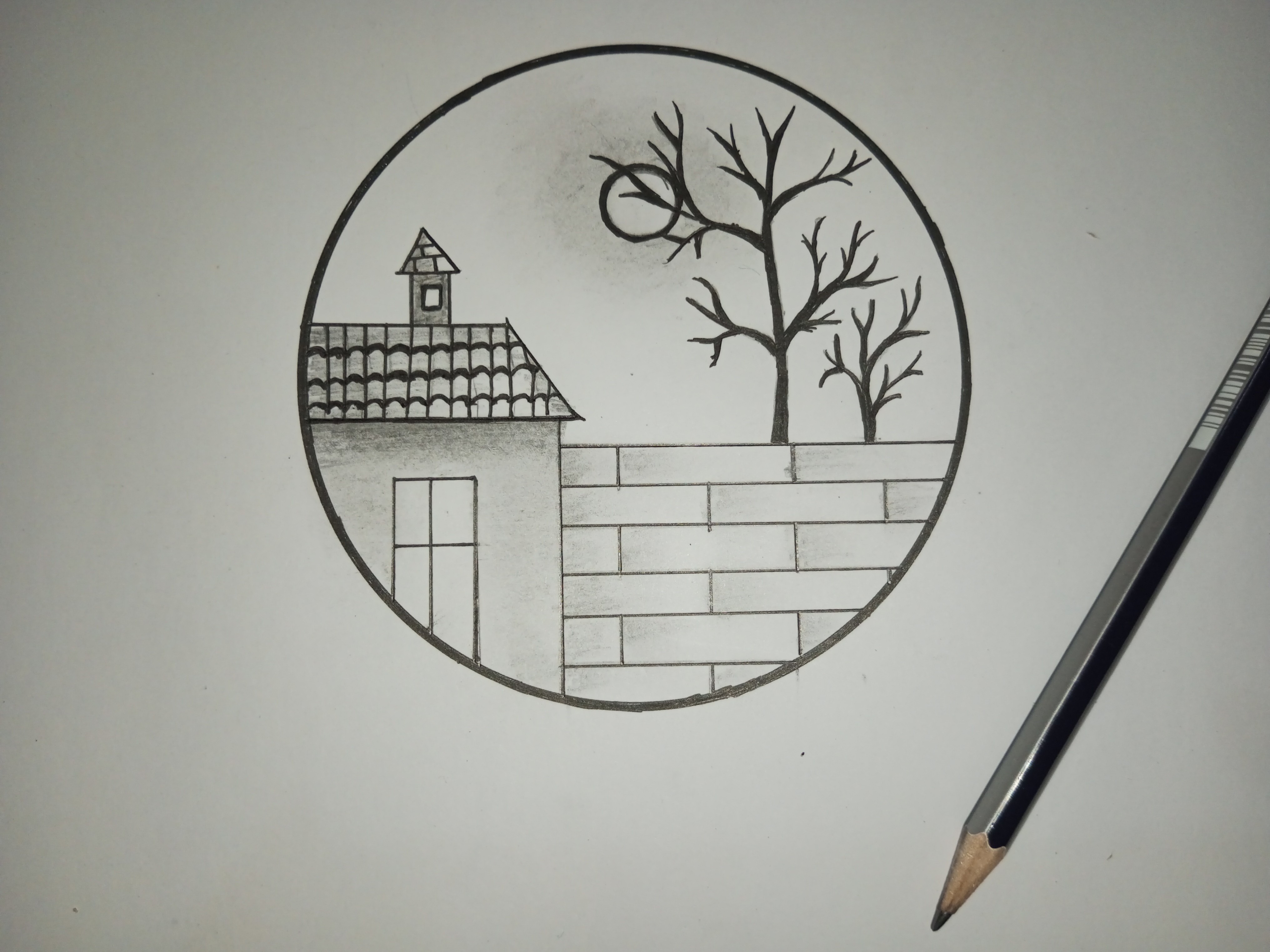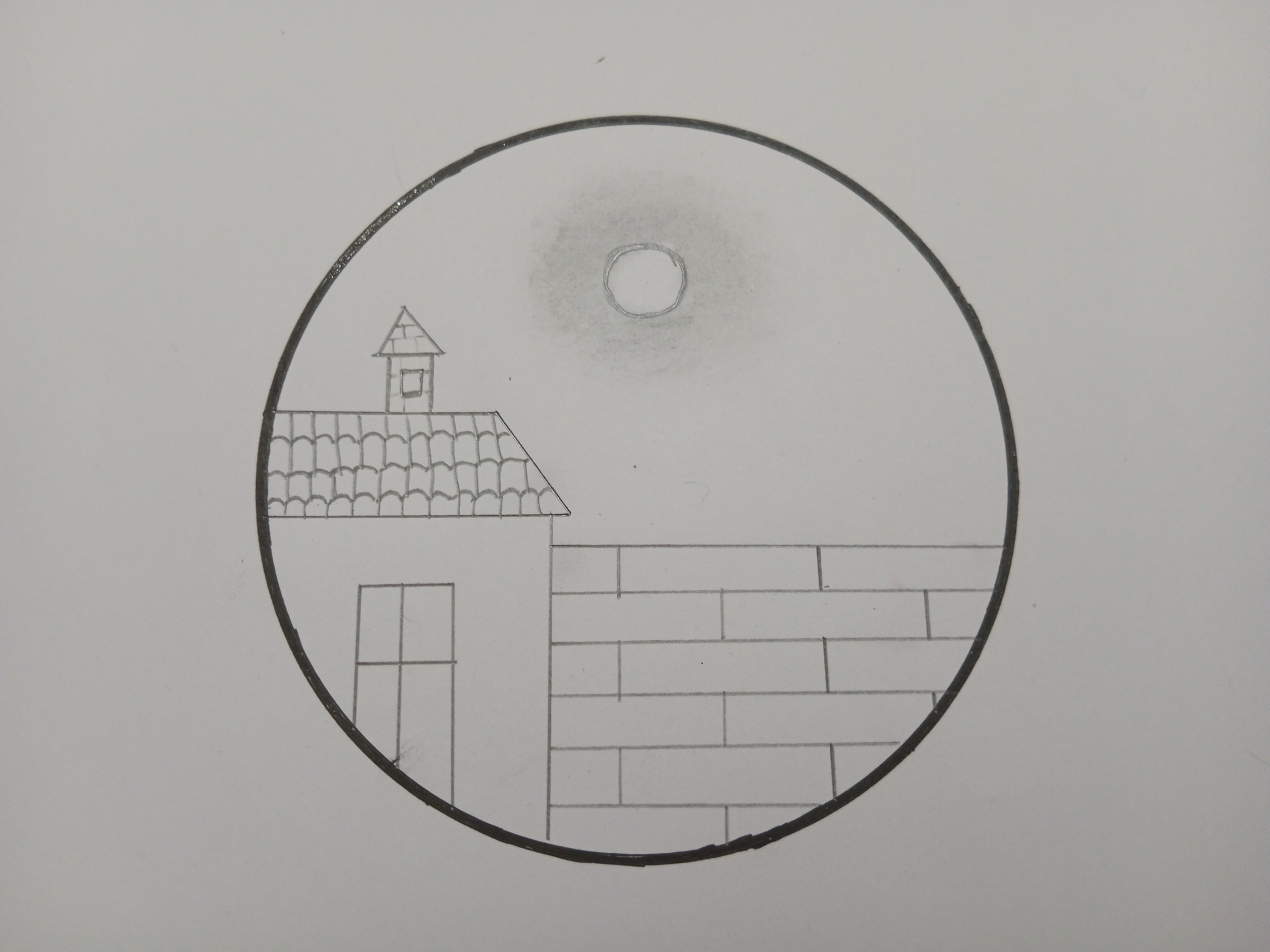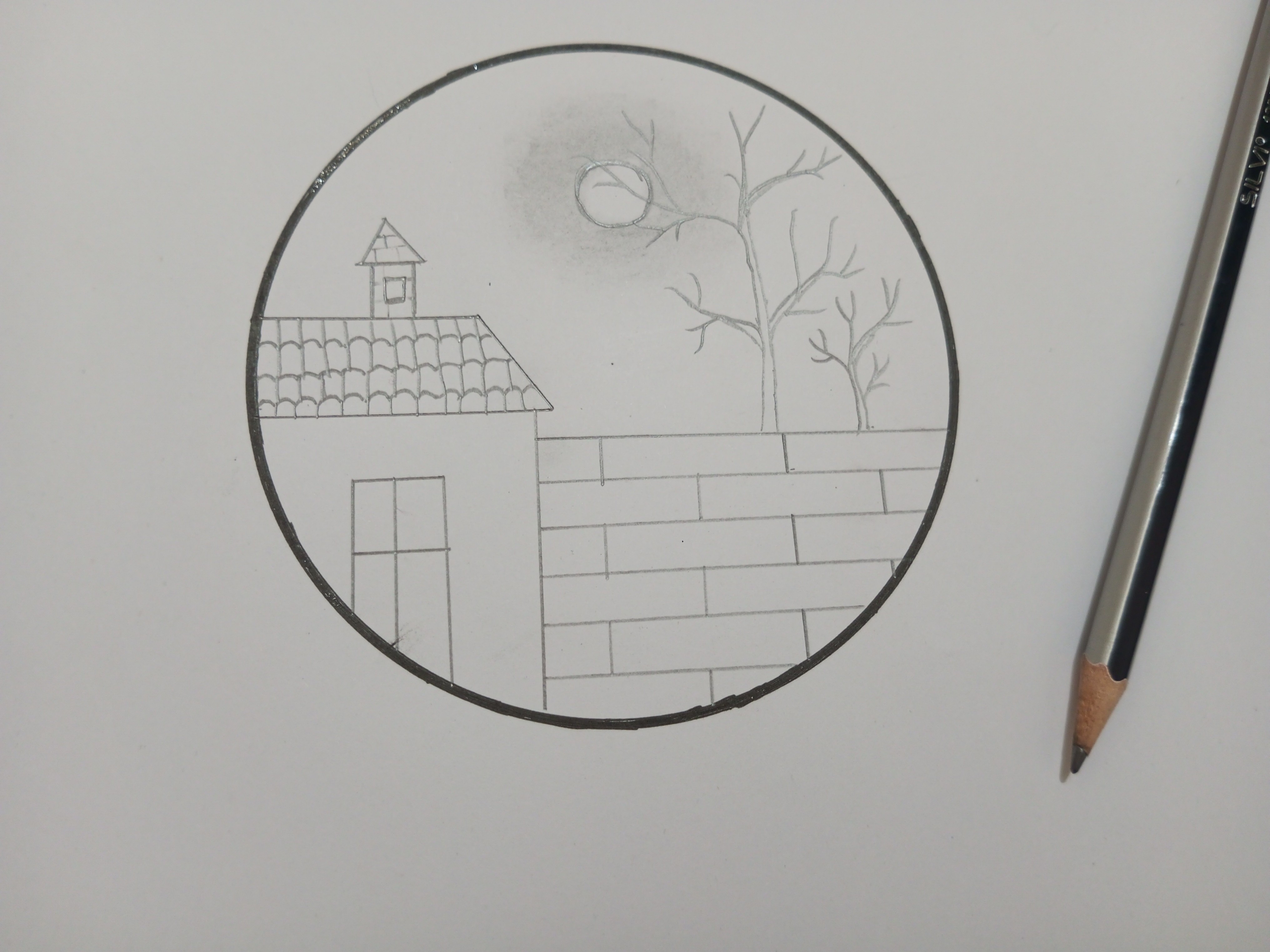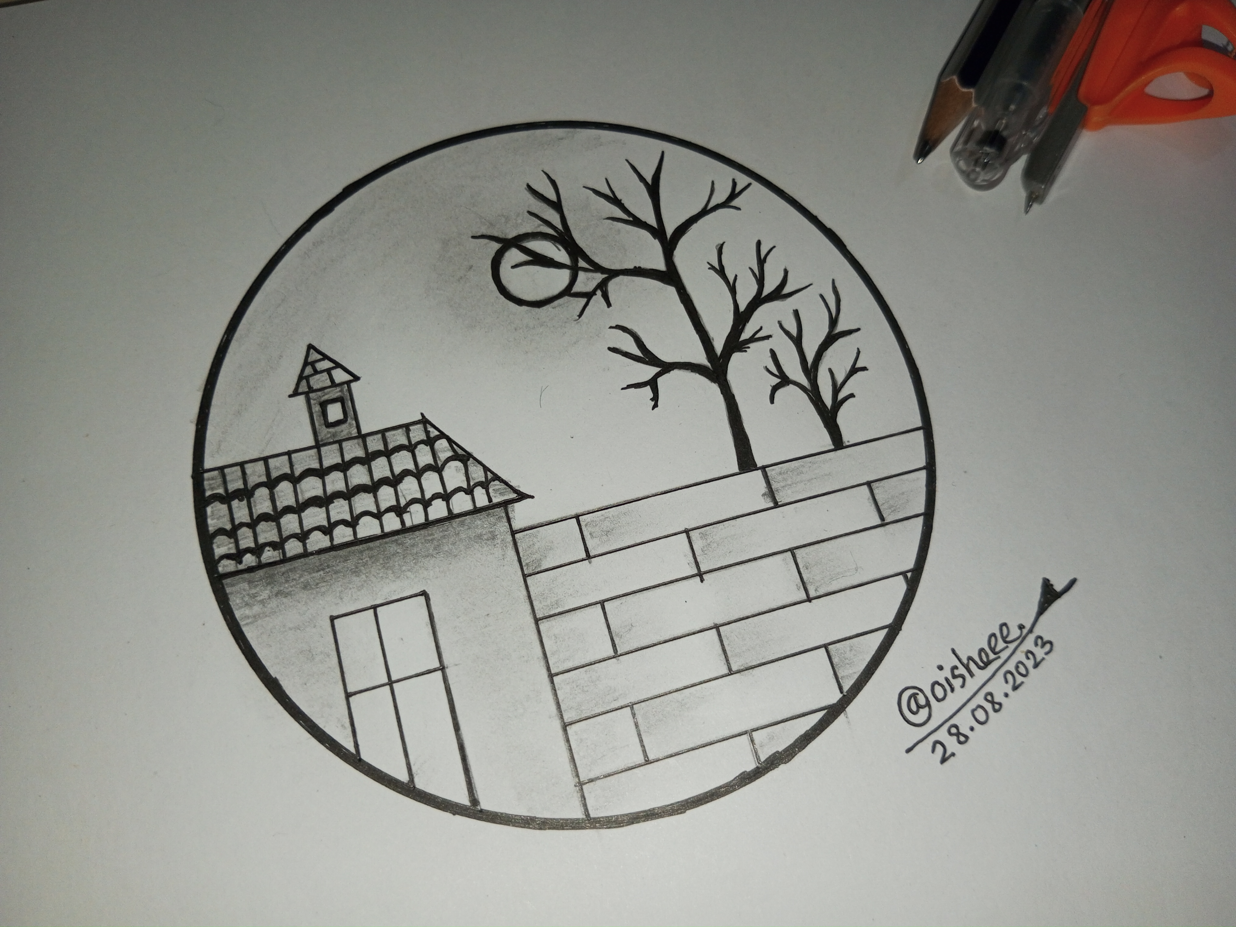 মূলত বৃত্তের ভিতরে আমি আমার সম্পূর্ণ আর্টটি করবো। সেজন্য বৃত্তের ভিতর একটি ঘর আঁকিয়ে নিলাম।