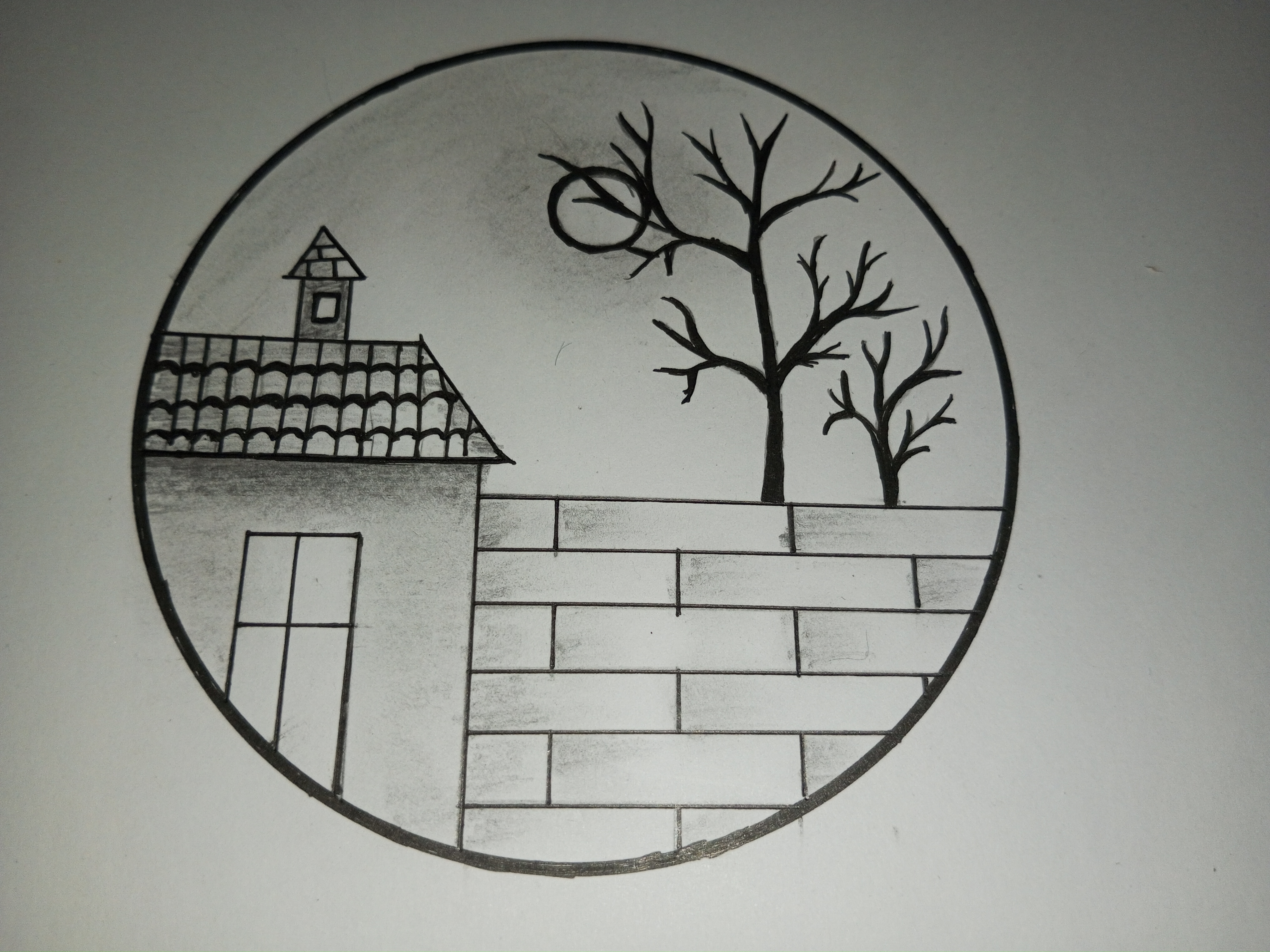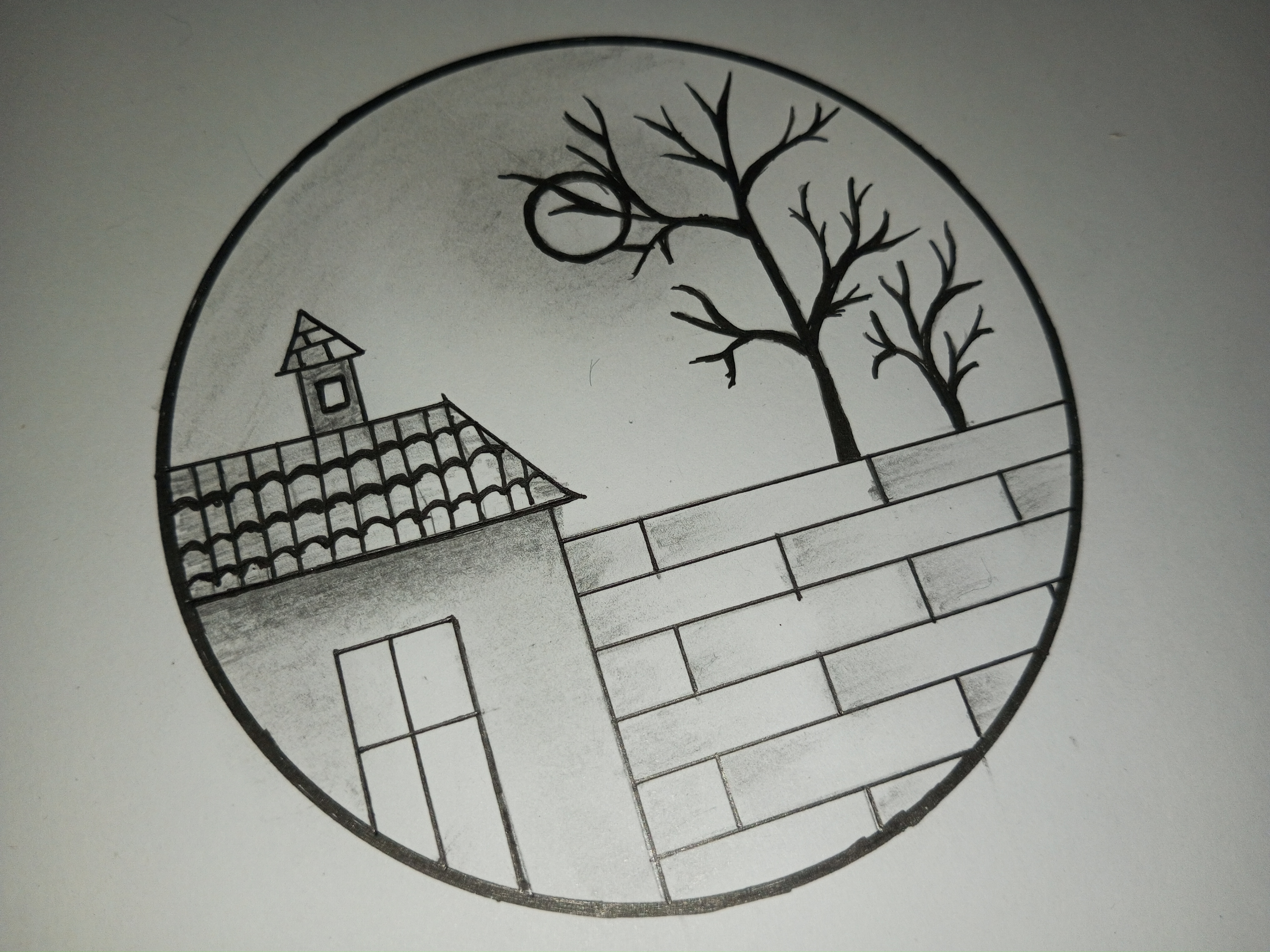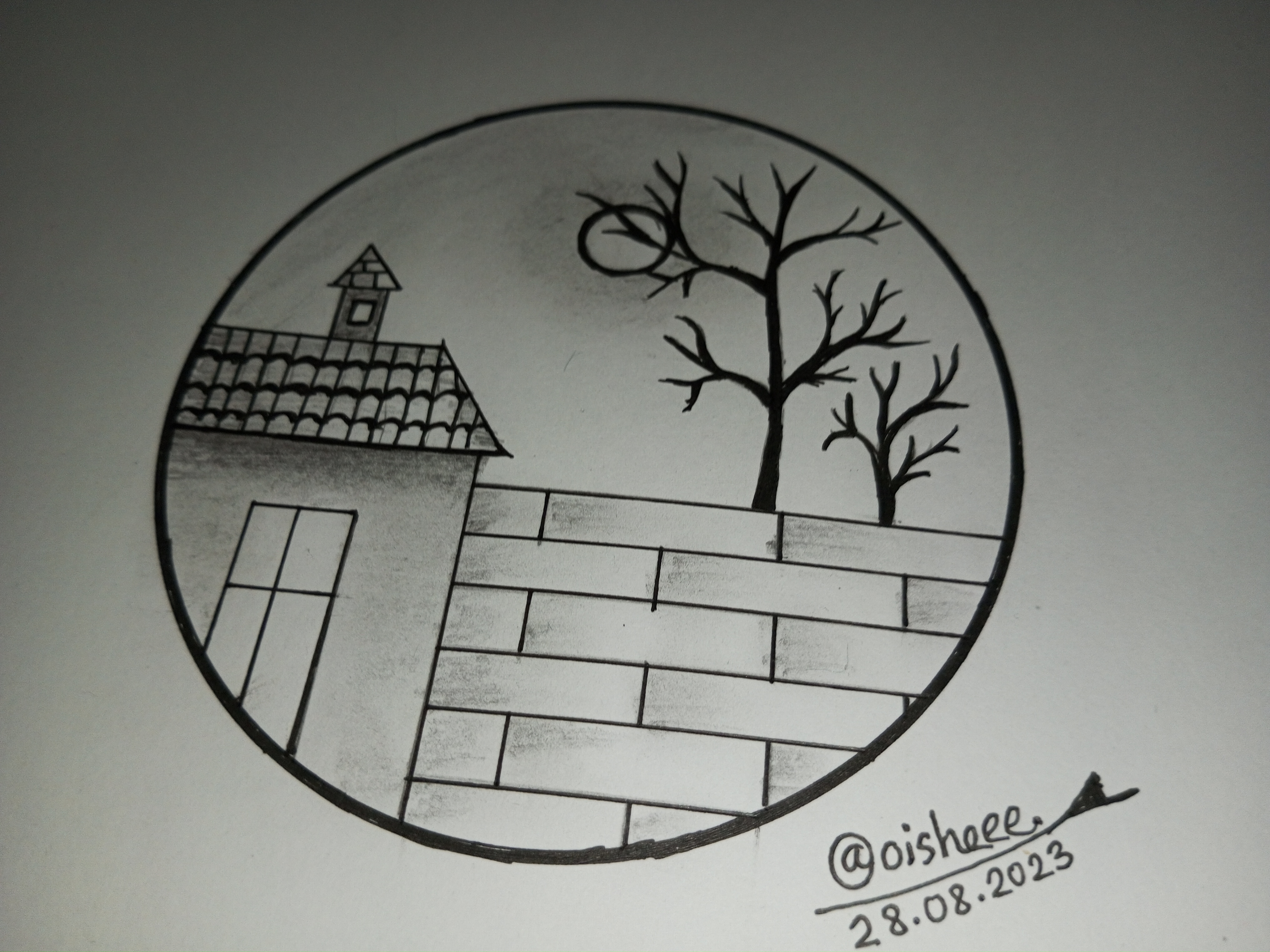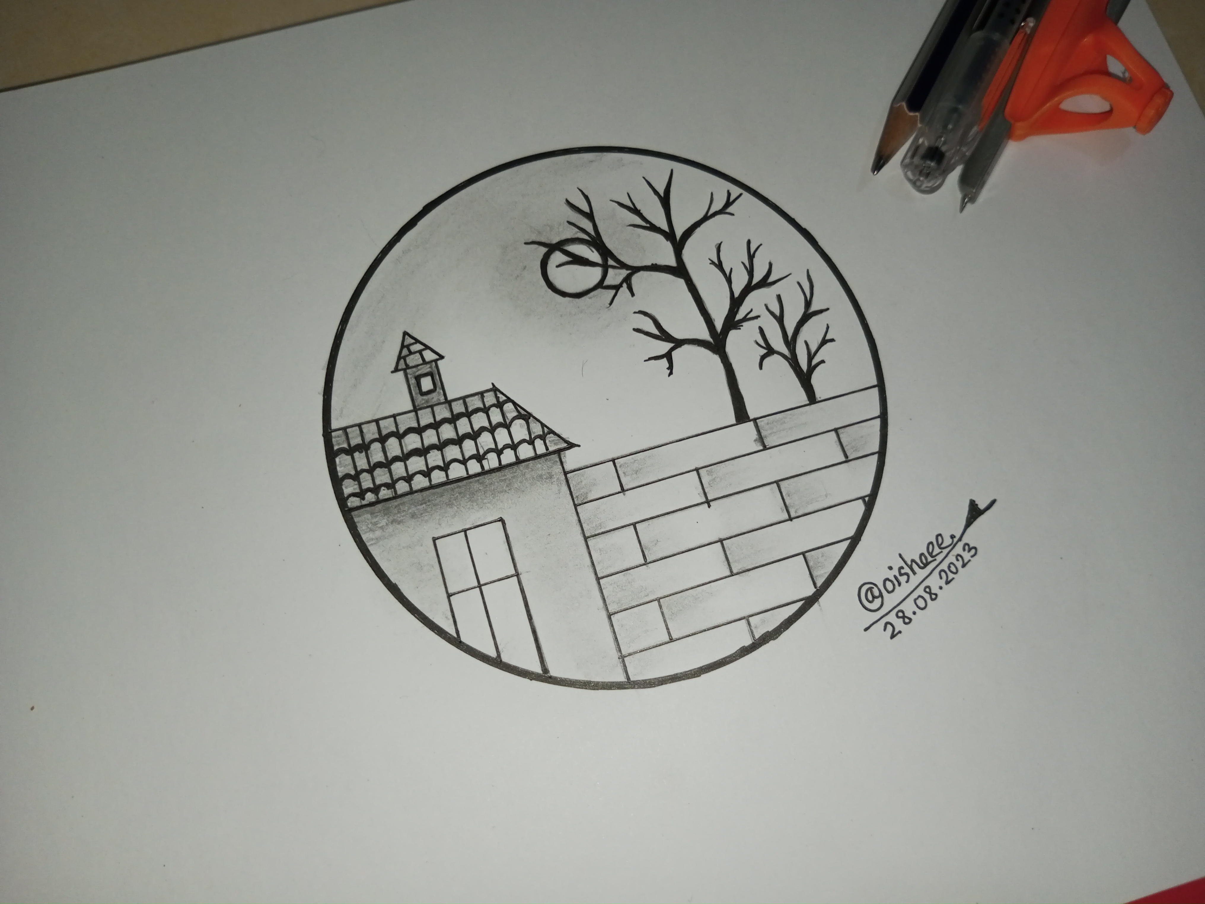 মূলত বৃত্তের ভিতরে আমি আমার সম্পূর্ণ আর্টটি করবো। সেজন্য বৃত্তের ভিতর একটি ঘর আঁকিয়ে নিলাম।