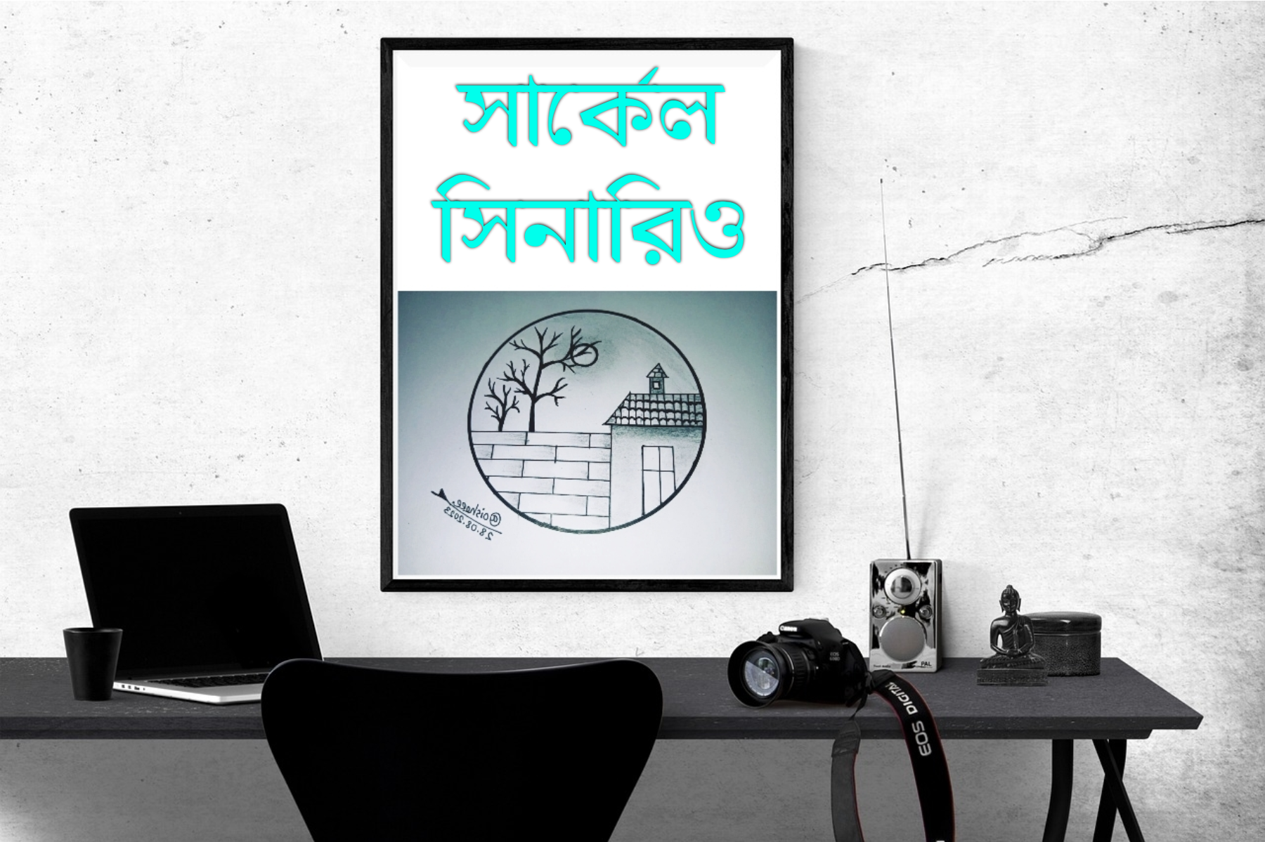 এখন ঘরে এবং ইটের দেয়ালের কিছু কিছু জায়গায় পেন্সিল দিয়ে স্কেচ করে নিব।
