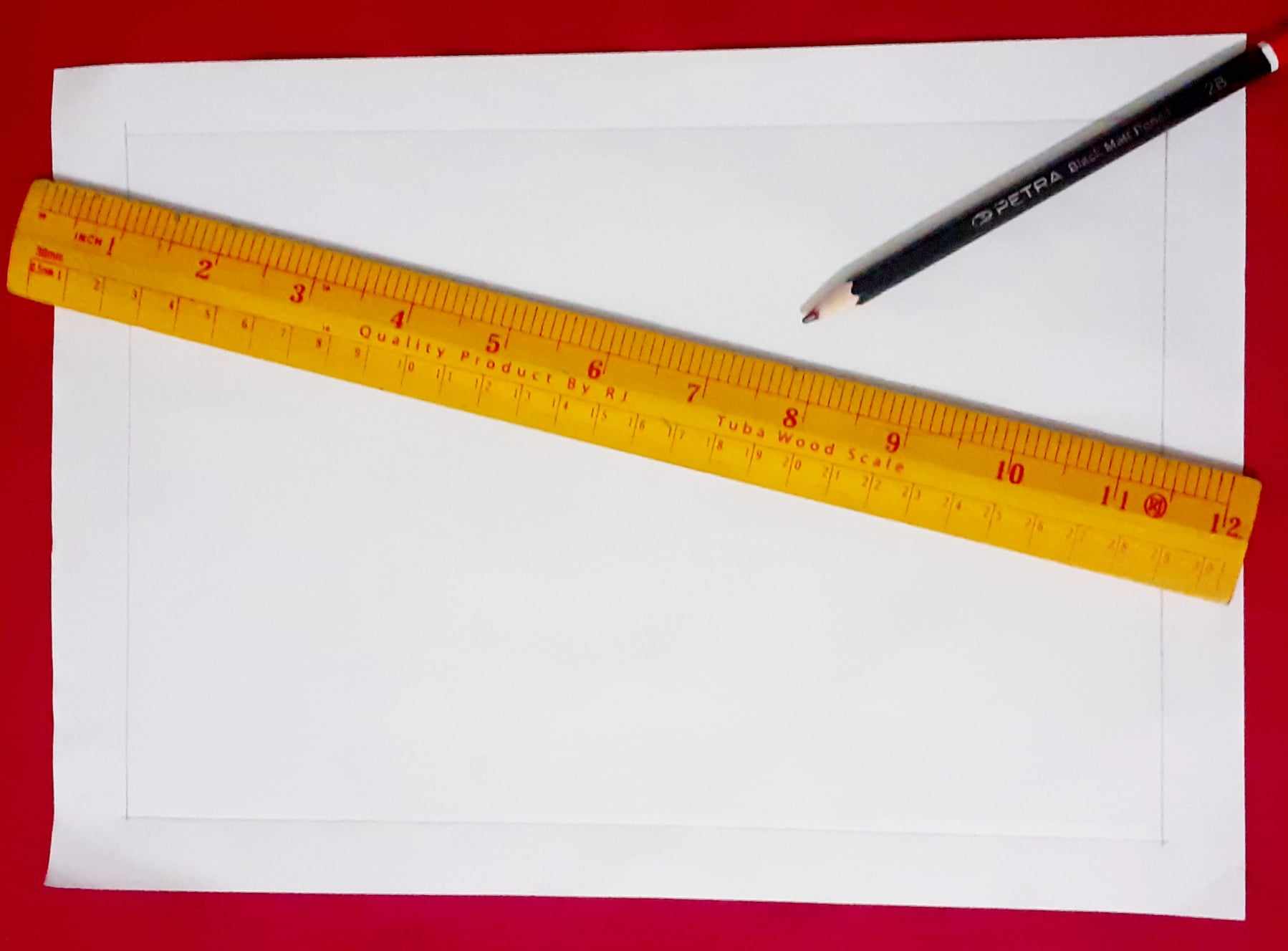 প্রথমে সাদা কাগজে সাদা কাগজের চারদিকে পেন্সিল দিয়ে দাগ দিয়ে নিয়েছি।