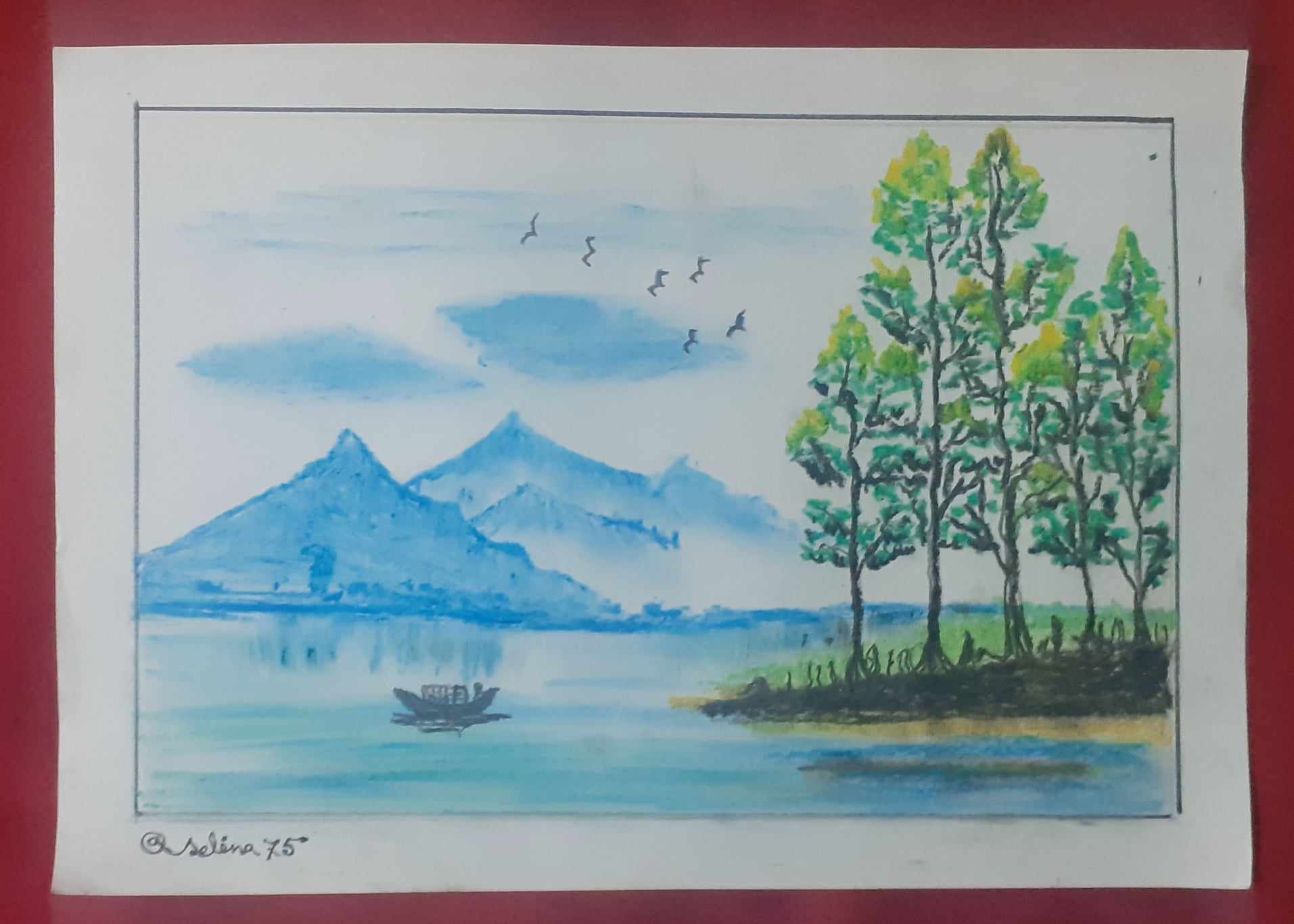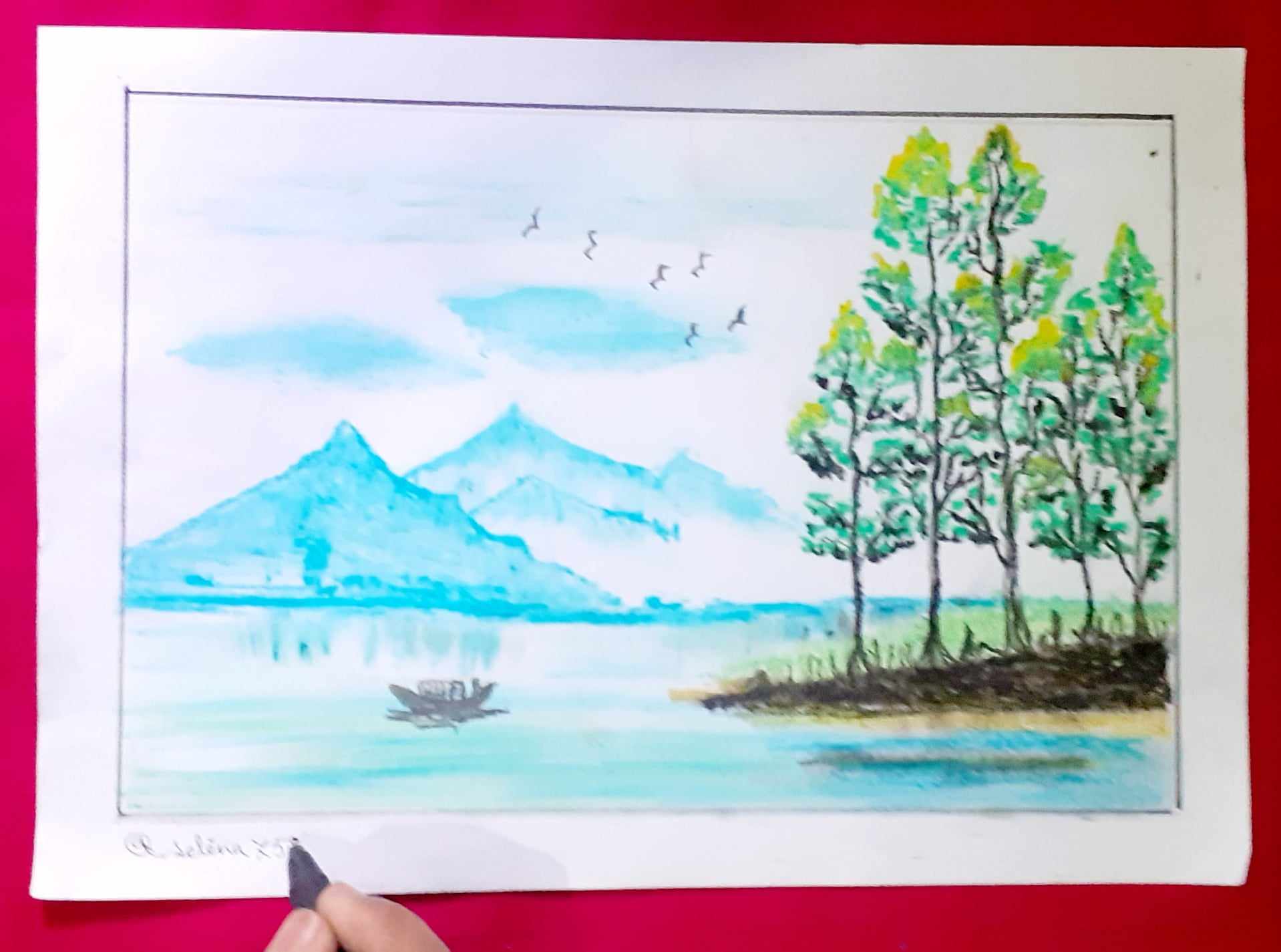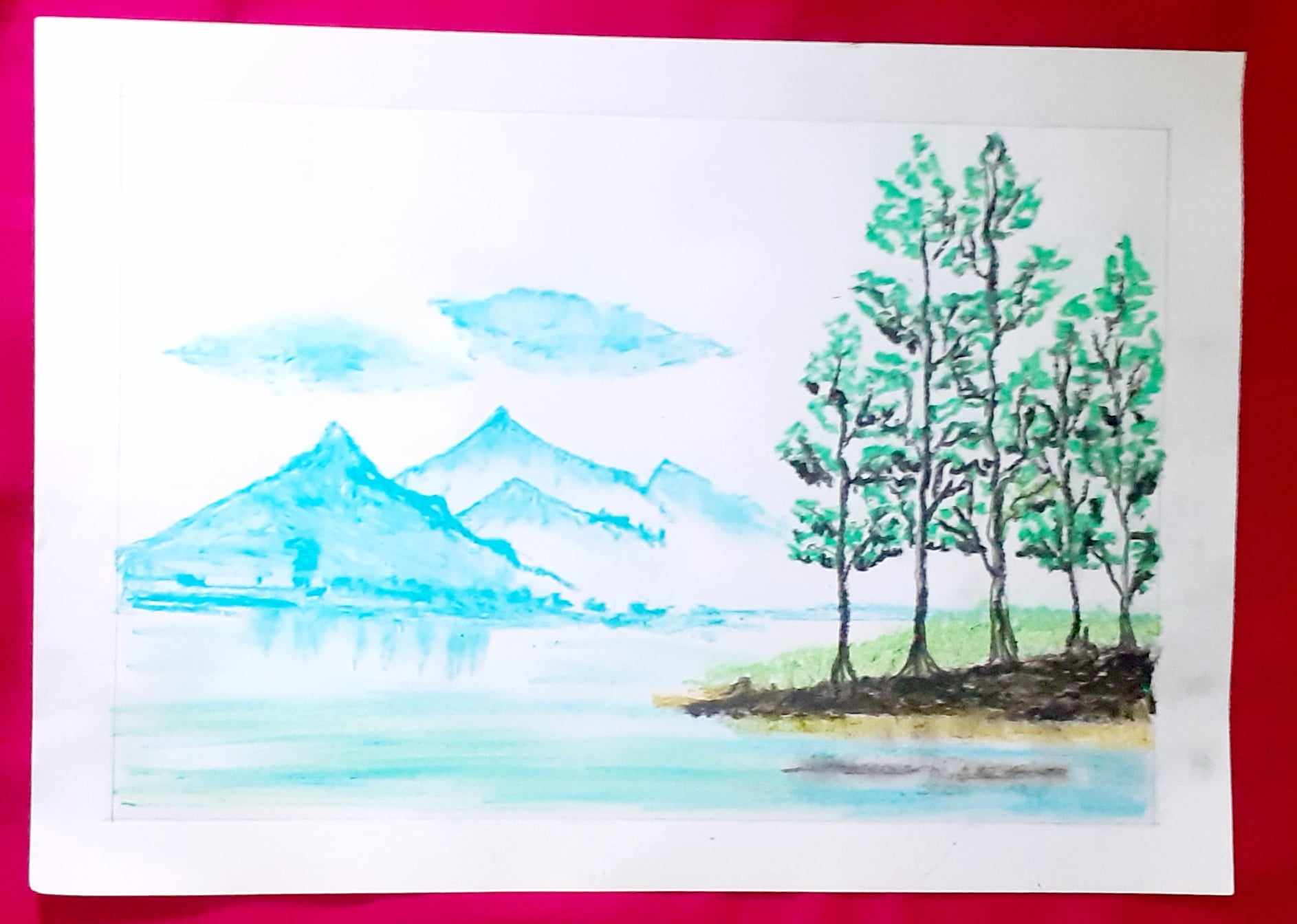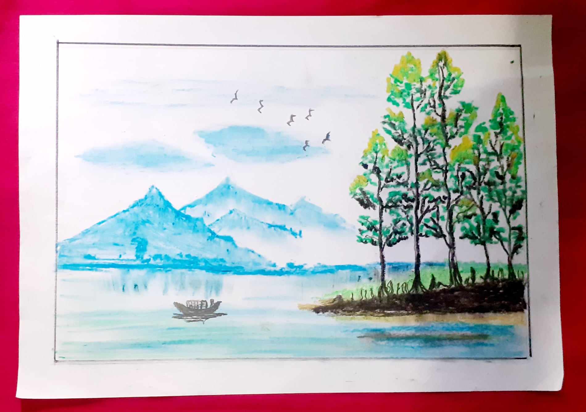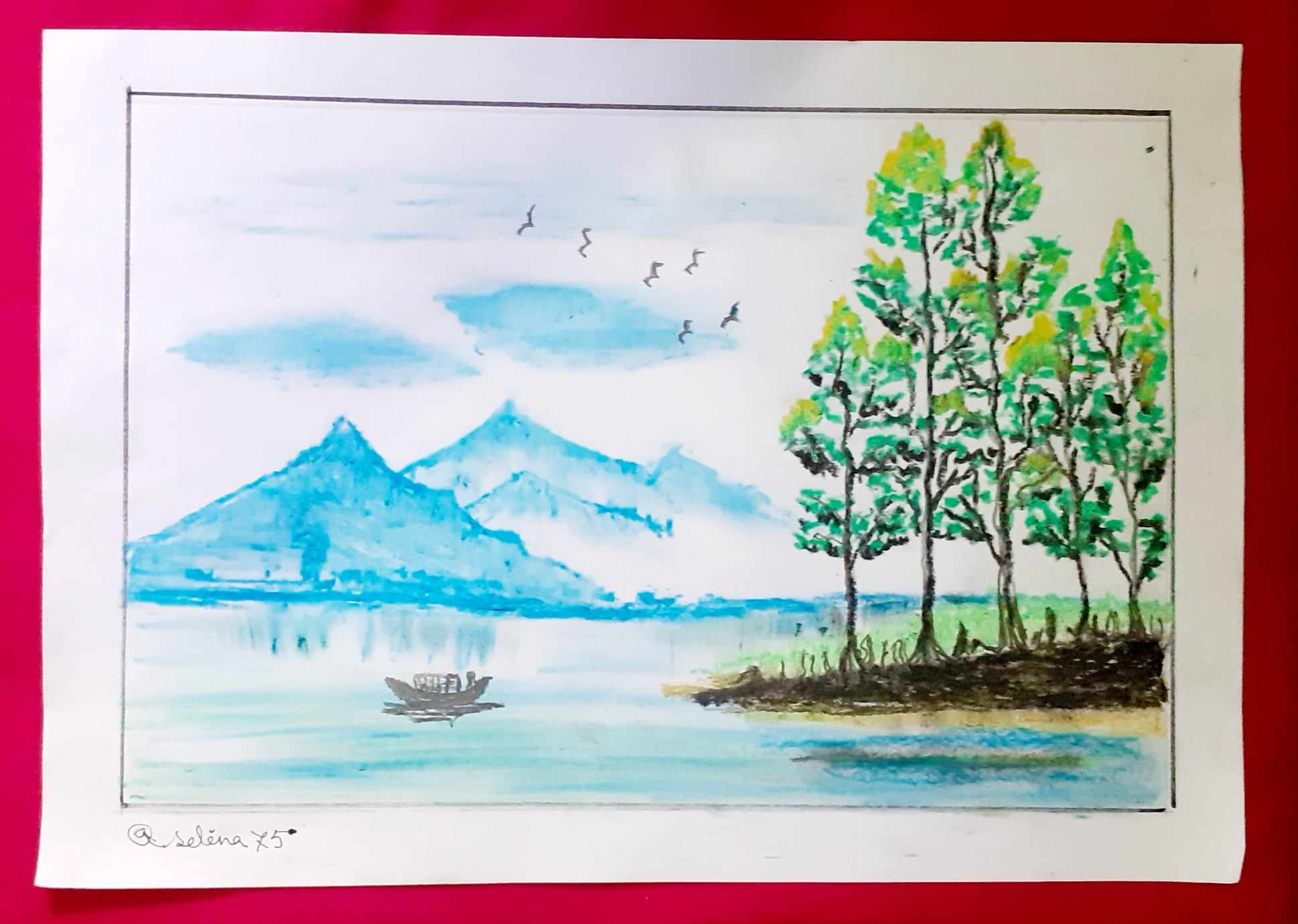 আর্টঃমোম রং দিয়ে প্রাকৃতিক দৃশ্য অংকন।