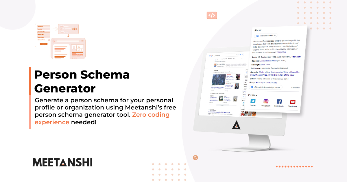 Meetanshi’s Person Schema Generator is a tool that helps you create person schema markup for your website without needing any coding knowledge. With a person schema generator, you simply input the necessary information about a person, such as their name, job title, email, and phone number, and the tool will generate the corresponding schema markup.