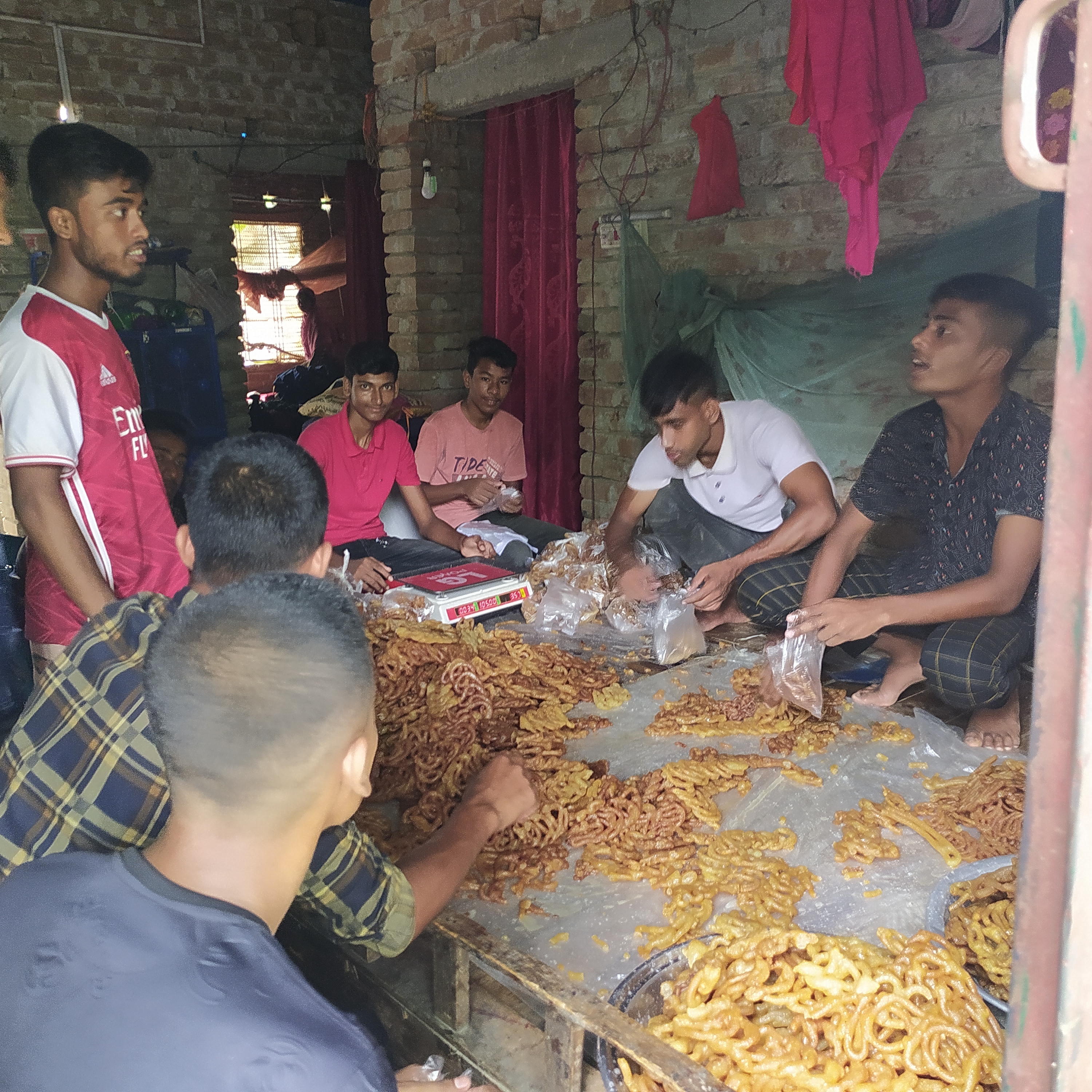 সকালে ঘুম থেকে উঠে ফ্রেশ হই। তারপর বিদয় অনুষ্ঠানের জন্য যে জিলাপির অর্ডার করা হয়েছিল সেখানে চলে যায়। তারপর জিলাপি তৈরি হয়ে গেলে সেগুলো প্যাকেট করার জন্য আমি সহ আমার সহপাঠিরা প্যাকেট করার কাজে লেগে পড়ি।