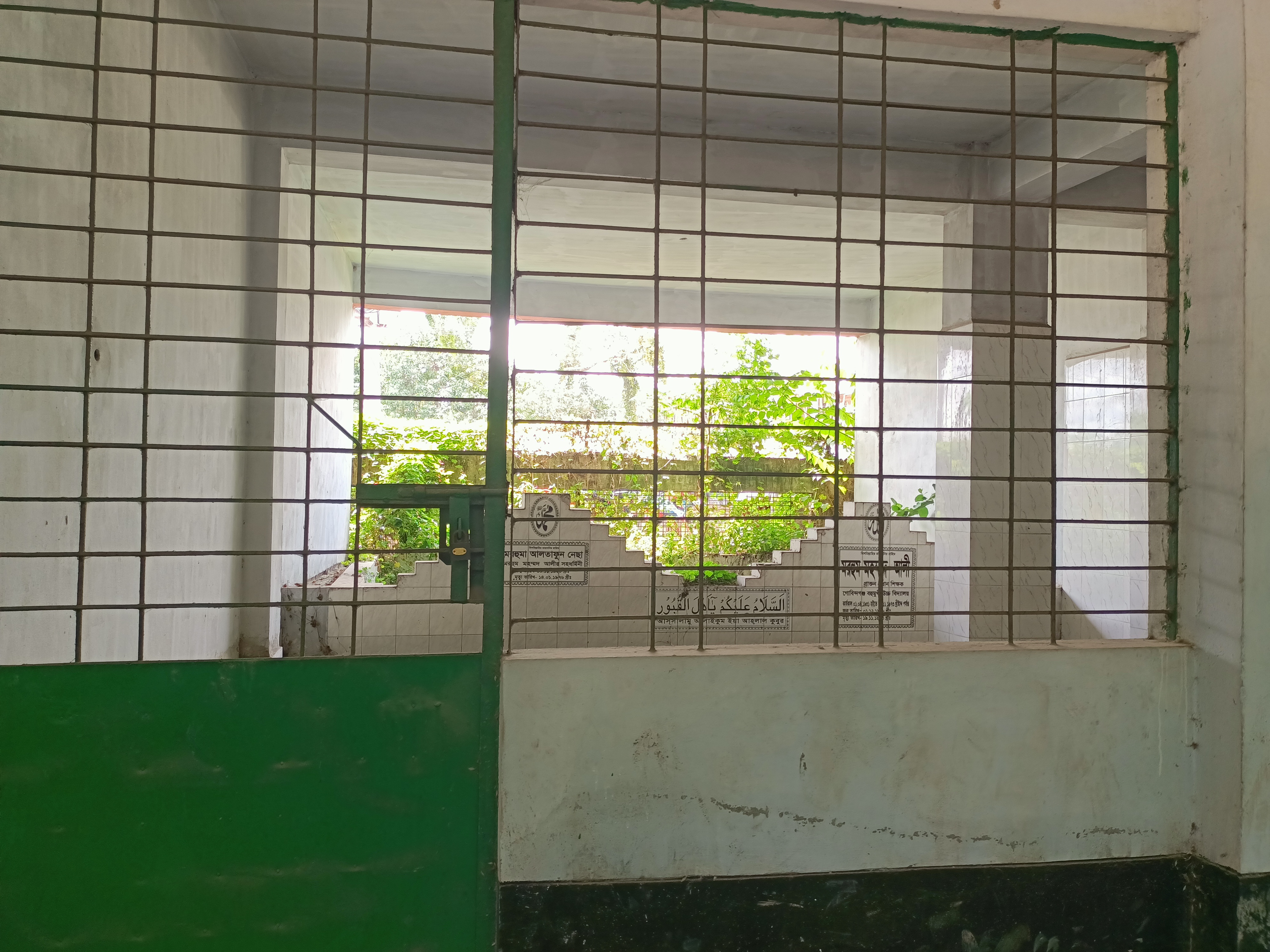 এই ছবিটা ভাল করে খেয়াল করলে দুইটা কবর দেখতে পারবেন গ্রিলের ভেতরে।আমাদের স্কুলের প্রথম হেড টিচার জনাব মোহাম্মদ আলী স্যার এবং তার সহধর্মিণীর কবর আছে ওখানে।