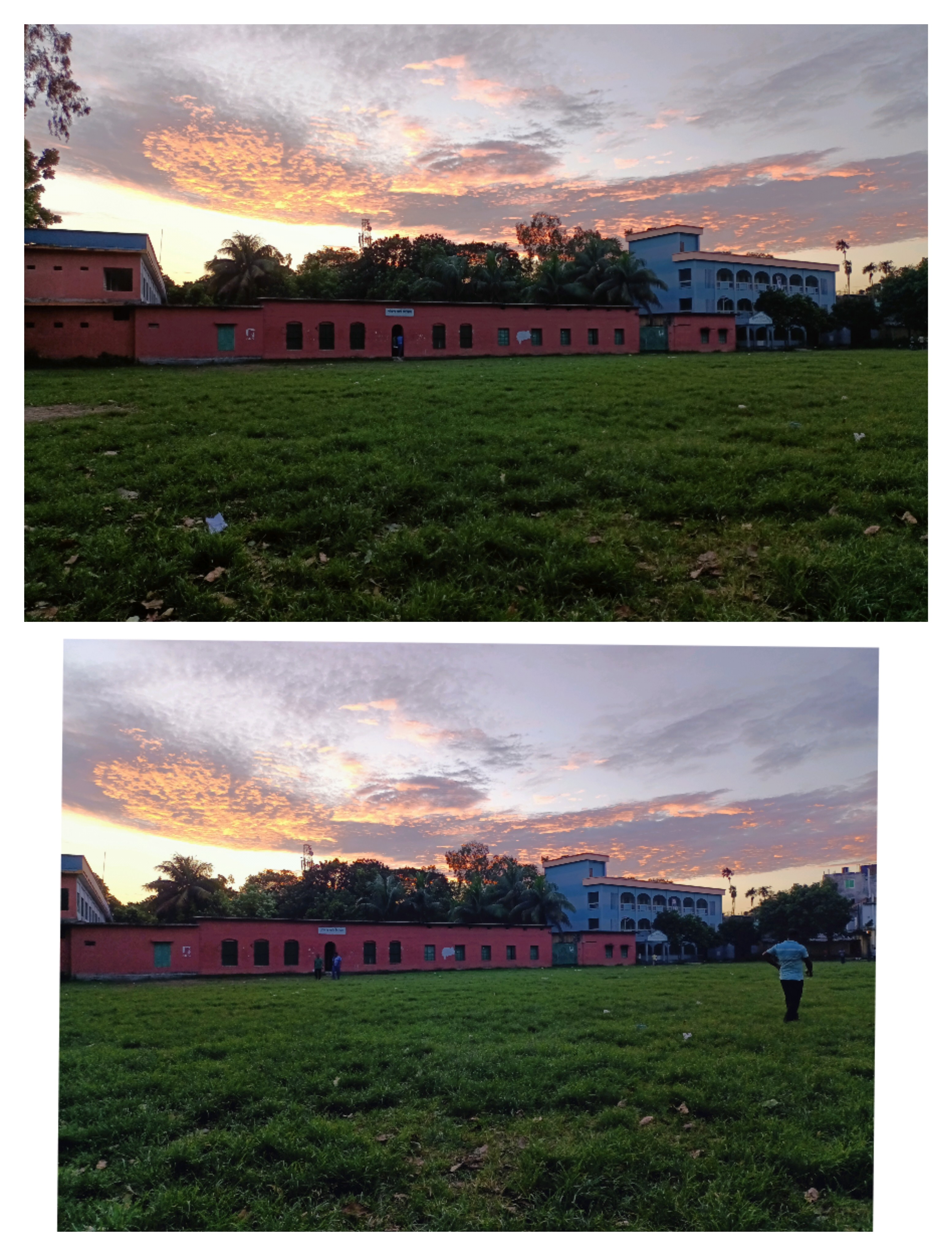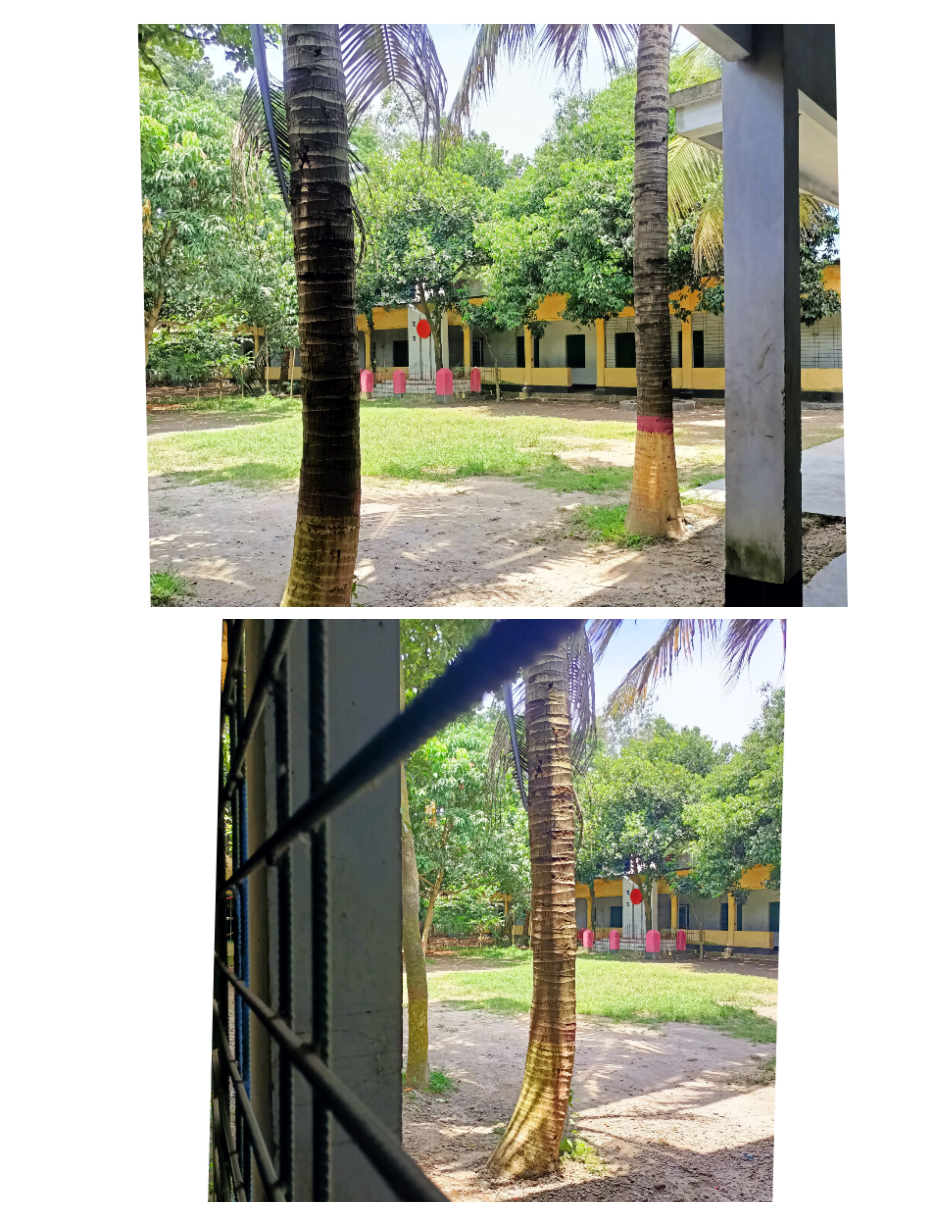 আমাদের স্কুলটার সেপের কথা বলতে গেলে বলতে হবে কিছুটা O সেপ।তো বাইরে একটা বড় মাঠ তো আছেই আর ভেতরে একটা ছোট মাঠও আছে।ছোট মাঠটাতেই পিটি করানো হতো।ছোট মাঠটার গেইটে তালা লাগানো জন্য ভেতরে ঢুকতে পেরেছিলাম না,গেটের বাইরে থেকেই দুই তিনটা ছবি তুলেছিলাম।