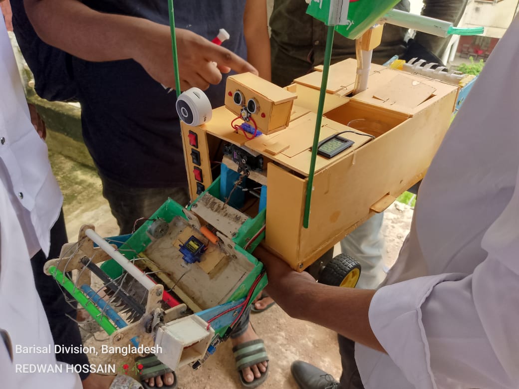 আমার ইনস্টিটিউটের ইলেকট্রনিক ডিপার্টমেন্টের বড় ভাই সিয়াম এবং তার ছোট্ট একটি টিম মিলে একটি অসাধারণ কৃষি রোবট তৈরি করেছেন। এই রোবটটি একসাথে পানি সেচ, বীজ বপন, কীটনাশক প্রয়োগ, এবং ধান মাড়াই সহ যাবতীয় কাজ করতে সক্ষম। বিশেষ বিষয় হলো, এটি ড্রাইভার ছাড়া কন্ট্রোল করা যায় এবং এর সামনে যদি কোনো ধরনের দুর্ঘটনা ঘটে, এটি অটোমেটিক্যালি বন্ধ হয়ে যায়।