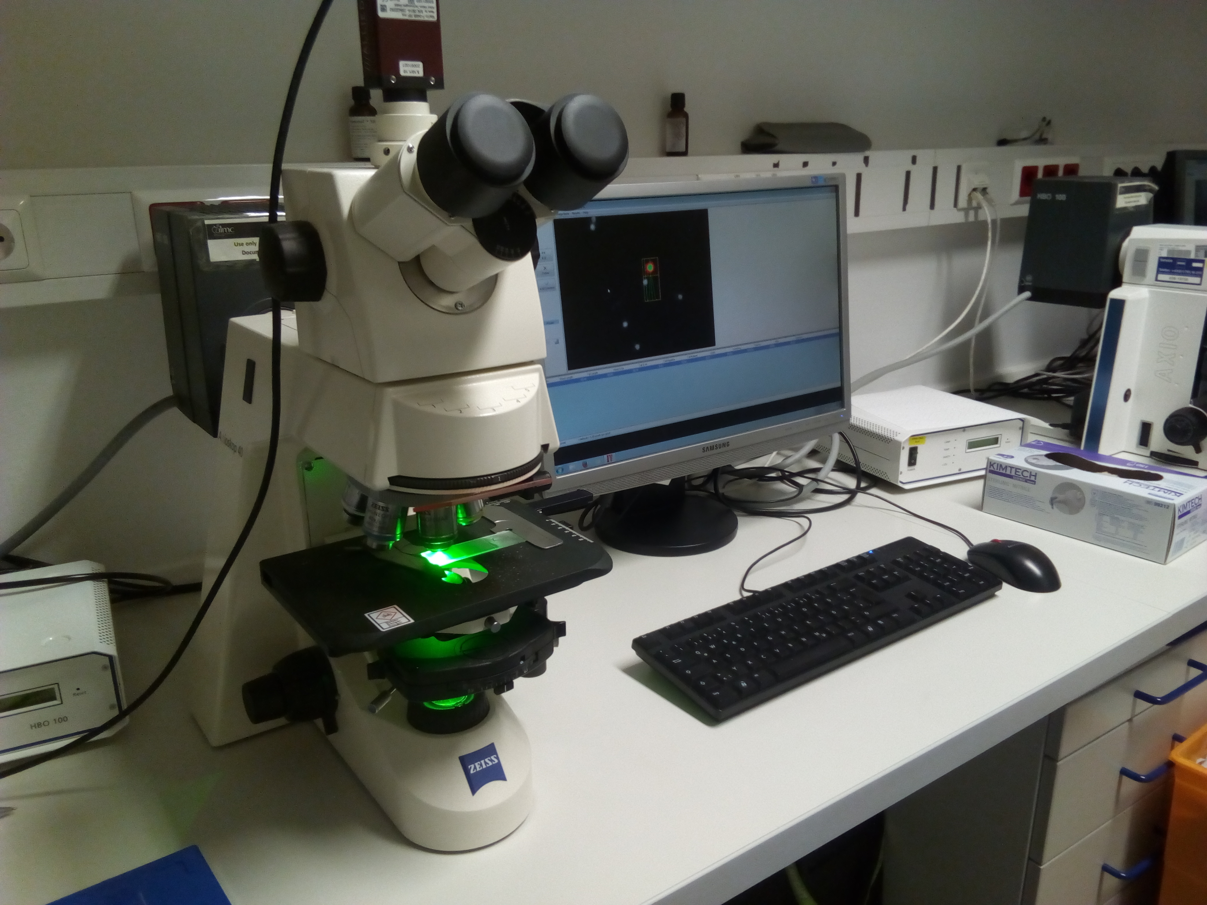 - a fluorescence microscope and the right software is available in the lab