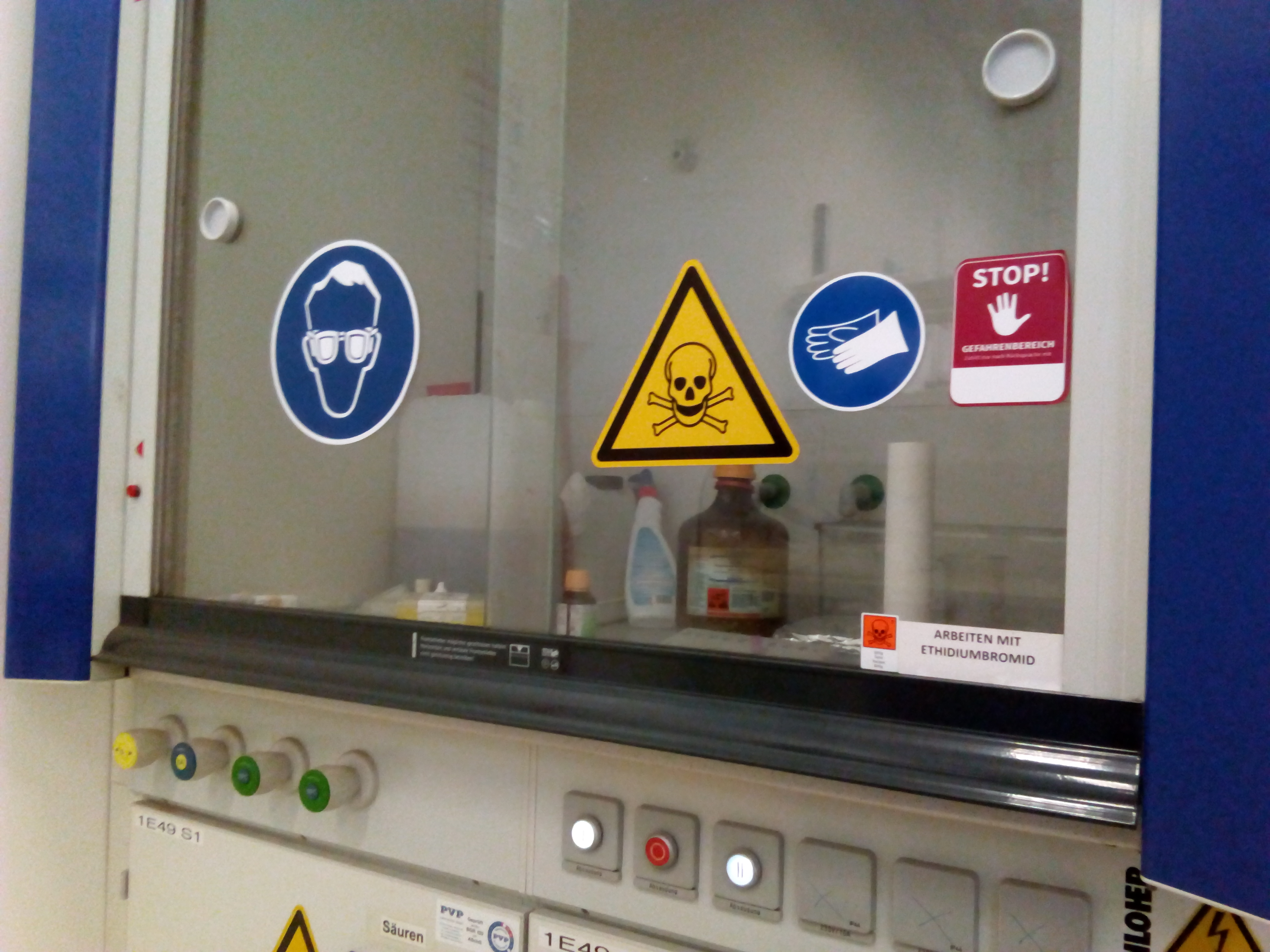 Rule of thumb: When chemists hang more than one warning sign, there's fire on the roof.
