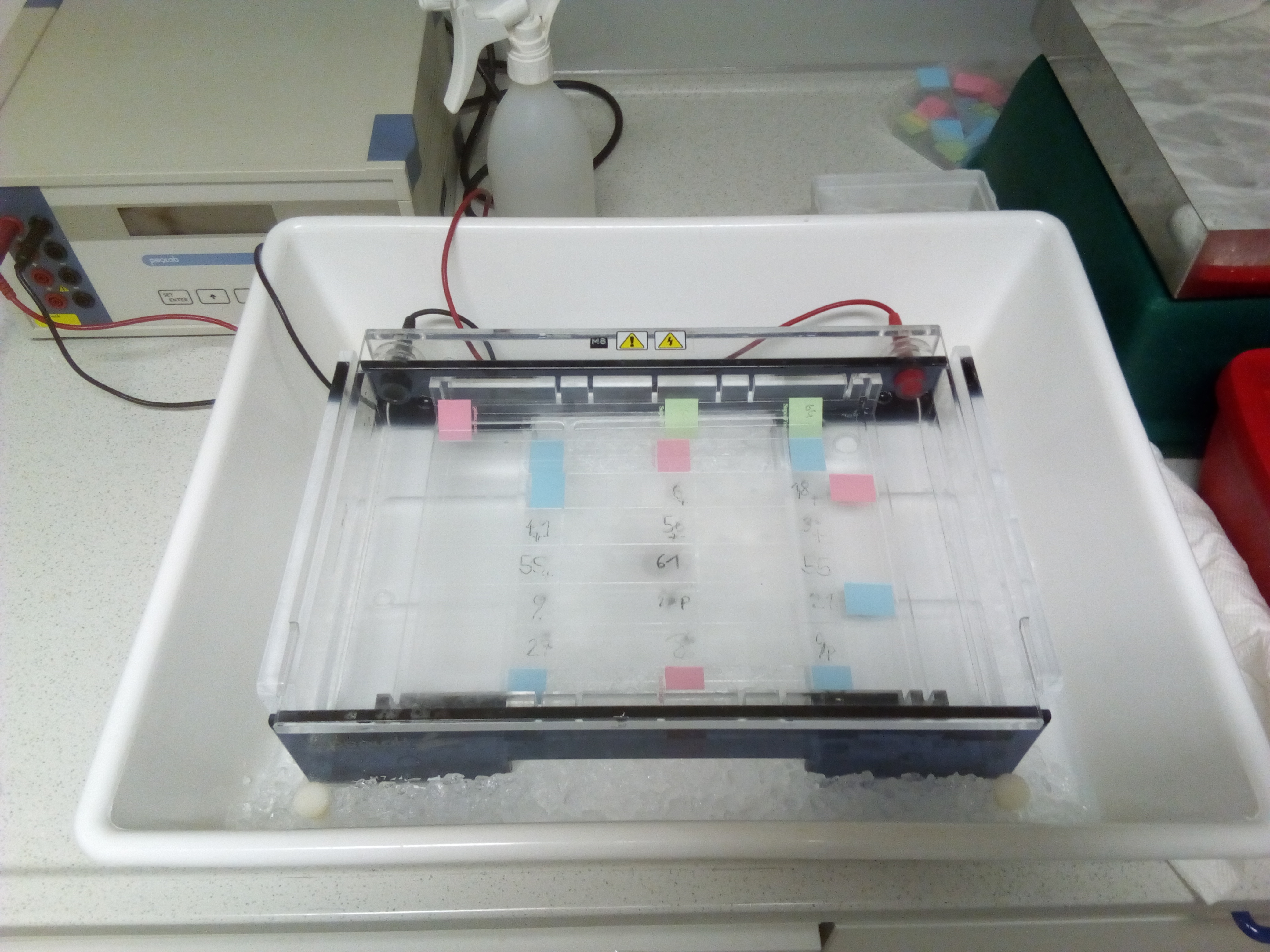- the equipment for electrophoresis is available in the lab (which should be relatively natural, unless you're stuck in a godless area of Europe...) twinkletwinkle towards @scienceangel...I'm talking about this...