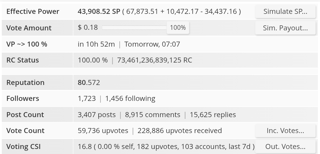 Cómo ya les mencioné estoy en steemit desde el año 2018, desde entonces estoy y mantengo activo , por lo menos una publicación diaria mantengo activa, interactuo con los demás steemians, mantengo una reputación de 80 la cual ha crecido gracias a los apoyos de las pequeñas y grandes cuentas curadoras,y un SP de más de 67k, muestra de mi crecimiento y ahorro durante estos años de trabajo.