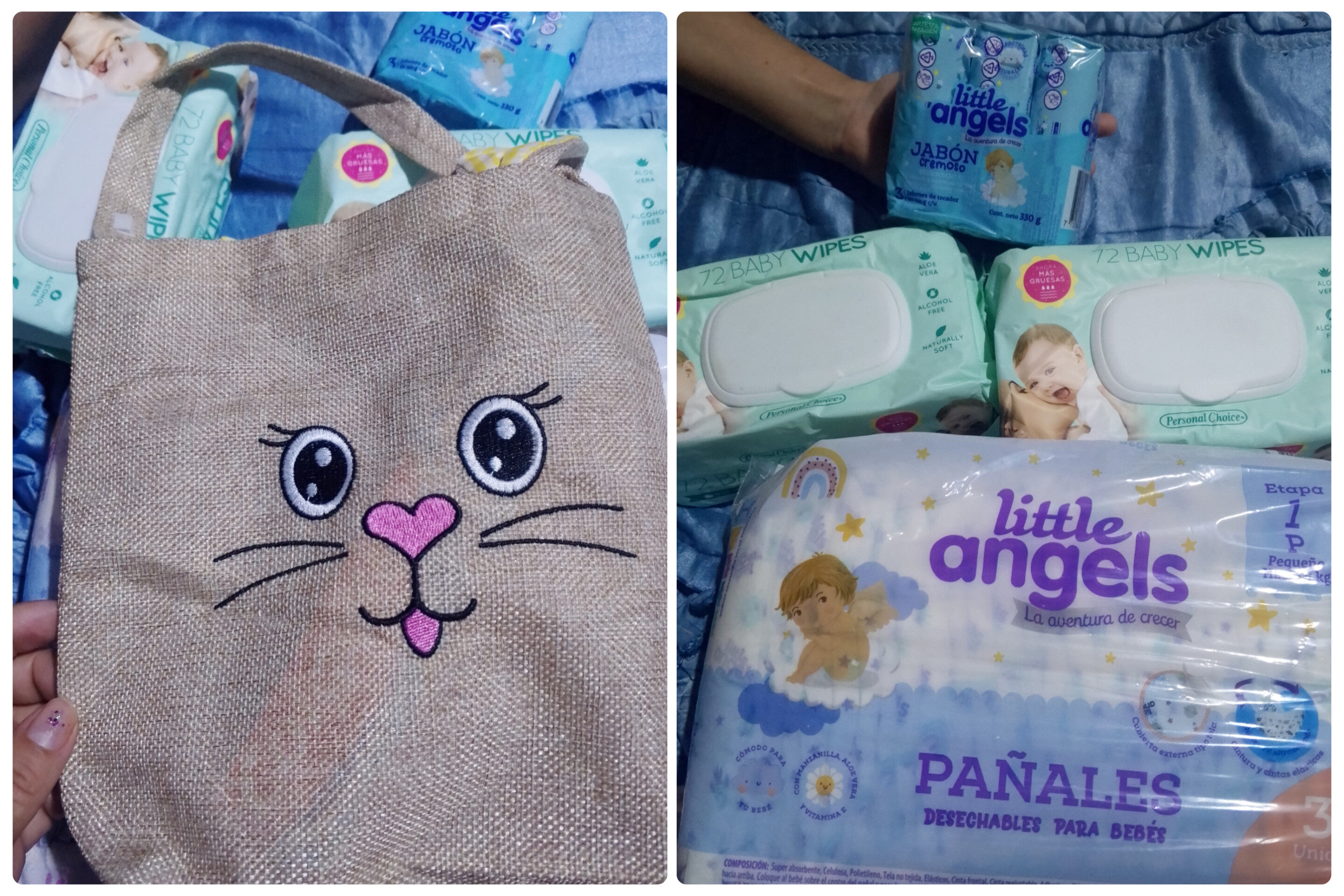 Ya nos íbamos a acostar y llegó mi cuñado, nos traía unas cosas que nos trajo tía Rossanna de Colombia, a todos nos trajo algo Pero mis hijos salieron ganando jejeje, para la o el bebé trajo pañales desechables, toallitas y unos jabones y para Reishell trajo unos zapatos muy lindos, lápices, un bolsito con hilo dental, pasta, un brillo de labios, colores y lápices.