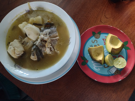 Nos fuimos a casa y puse a descongelar pescado para hacer una sopa, tenía muchas ganas de tomar sopa de pescado. Mi mama me la iba hacer, pero como tuvo que adelantar su viaje, no pudo hacerla. Había quedado un poquito de aguacate, limoncito y a chuparse los dedos. Eso comimos como a las 2:30 pm, la espera valió la pena.
