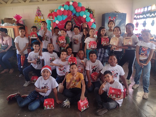 La maestra les tenía preparado un detallito, pero lo hizo como intercambio, todos los niños muy emocionados con sus regalos. Repartimos la torta muy rica, de chocolate, incluso me dieron el dato del repostero. Entregamos los cotillones y un ponqué para cada niño, eso era dulce y dulce, finalmente la foto grupal y recoger todo el corotero.